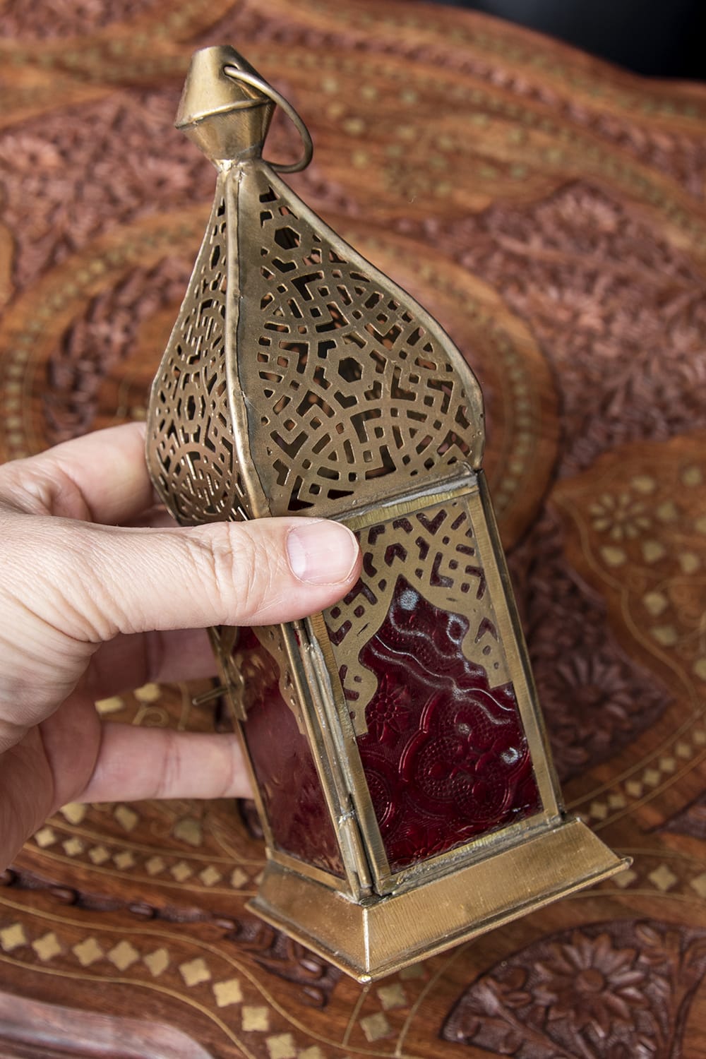 モロッコスタイルの透かし彫りLEDキャンドルランタン〔ロウソク風LEDキャンドル付き〕 - 〔レッド〕約22.5×8cm 通販店