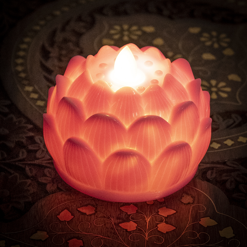 キャンドル型のLEDライトは、蝋燭の形が一般的ですが、こちらは珍しい睡蓮デザイン。 ヒンドゥー教のお祭りの、「光のフェスティバル」と呼ばれるディワリでは、オイルランプを灯す習慣があるのですが、 そんなお祭りで灯すのにも似合いそうな雰囲気です。■さまざまな用途へ