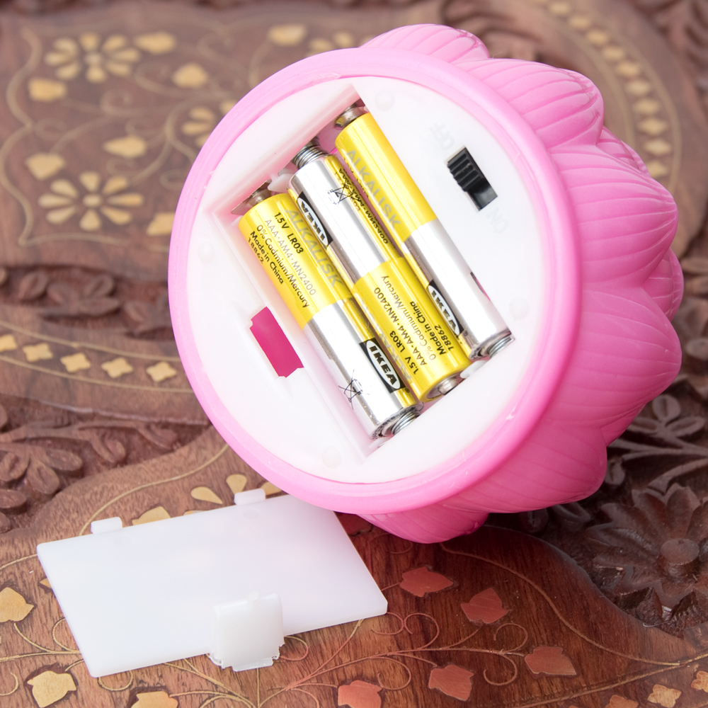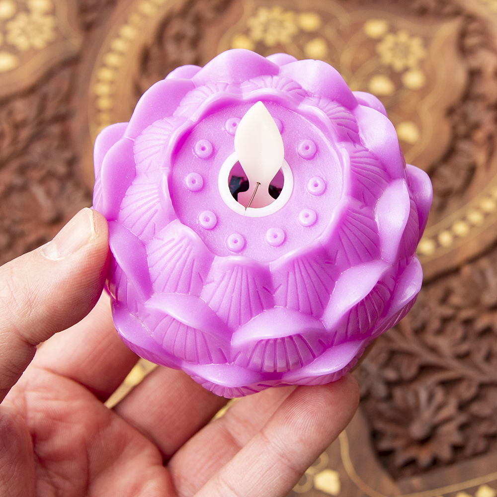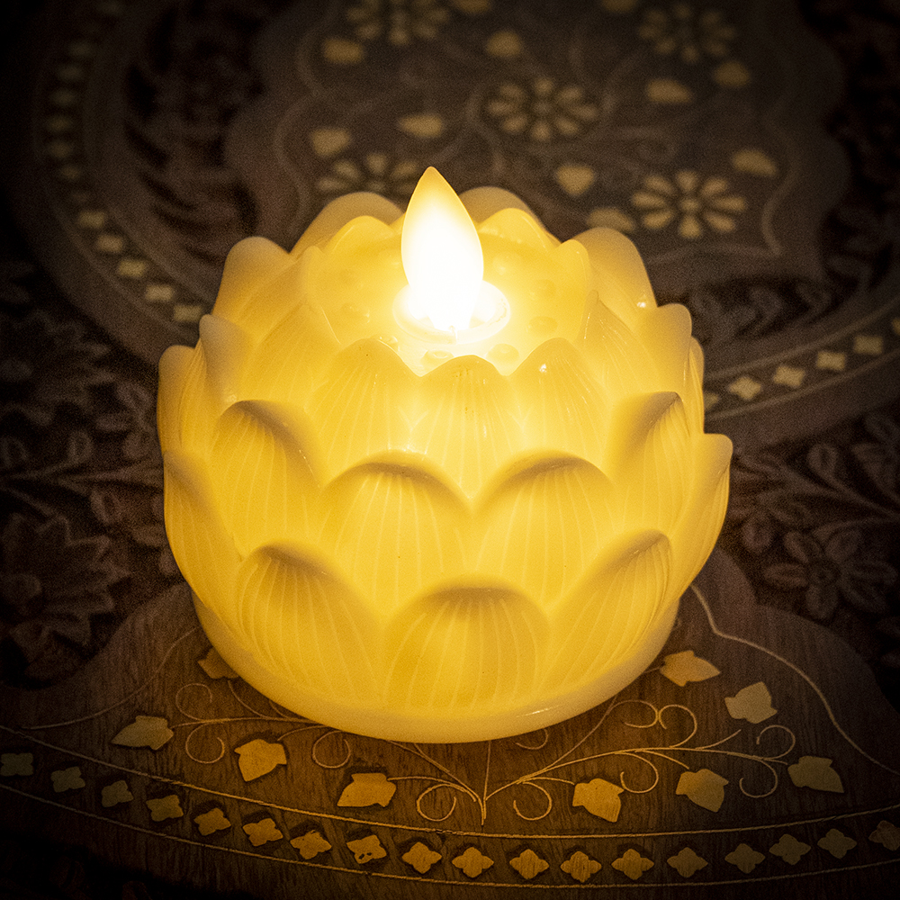 キャンドル型のLEDライトは、蝋燭の形が一般的ですが、こちらは珍しい睡蓮デザイン。 ヒンドゥー教のお祭りの、「光のフェスティバル」と呼ばれるディワリでは、オイルランプを灯す習慣があるのですが、 そんなお祭りで灯すのにも似合いそうな雰囲気です。■さまざまな用途へ