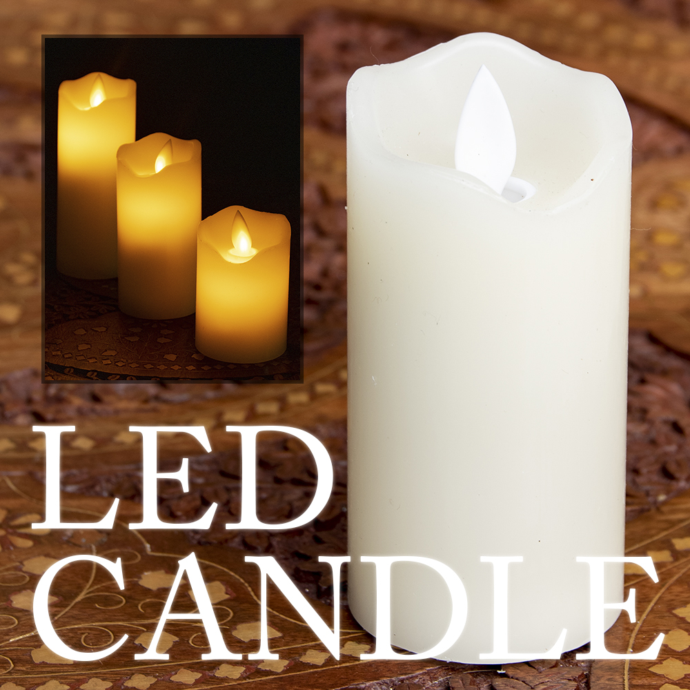 ゆらゆらと炎のように光が揺らぐ、ロウソク風のLEDキャンドルライトです。 LEDのキャンドルライトなどに入れて、ガラス越しに見えるライトの明かりは、まるで本物の蝋燭の炎。火を使わないので安心です。また、リアルな質感に拘り、ボディに本物のロウを使用。本物の素材を使うことにより、見た目、手触り共に 重厚感のある雰囲気に仕上がっています。