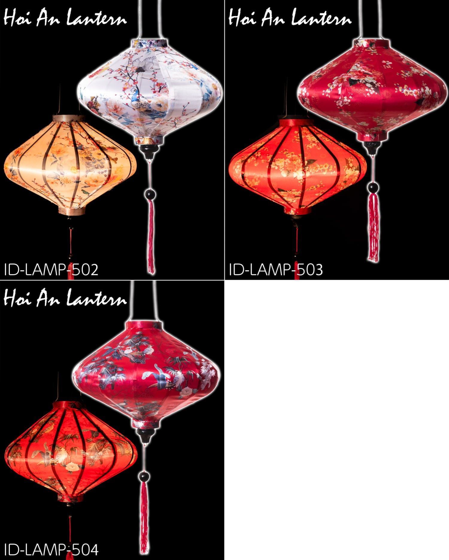 匿名希望様 華やかな柄入り ベトナム伝統のホイアン・ランタン〔提灯〕 - 薄ひし形〔更紗模様〕