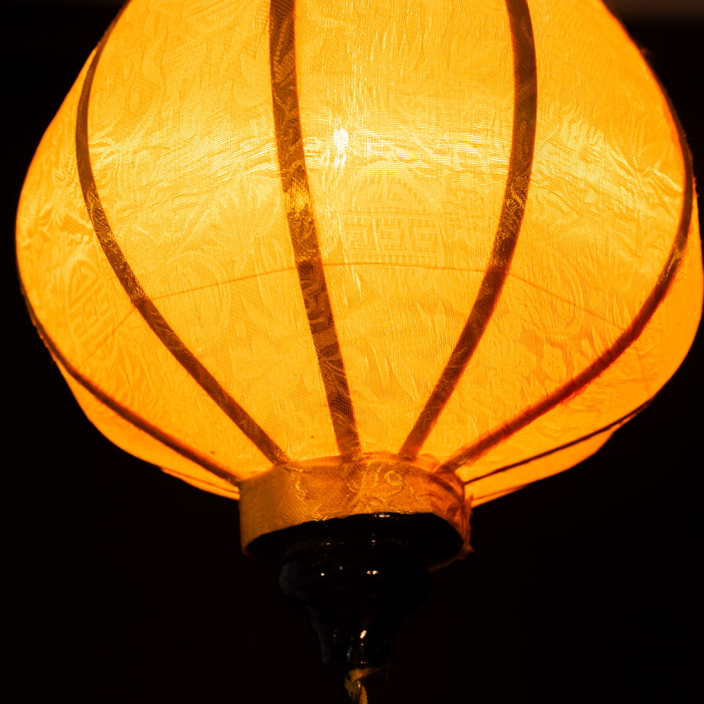 ベトナムに訪れるとよく見かけるのがこの提灯型のランタンです。手作りの温かみを感じさせる竹製の枠組み、光沢のある美しい生地の布に刻み込まれた歴史を感じさせる伝統的な模様、フランス的な洒落た街並みと、ランタンから漏れる幻想的な光が縦にも横にも無数に並んでいる様子は溜息が漏れてしまう程です。