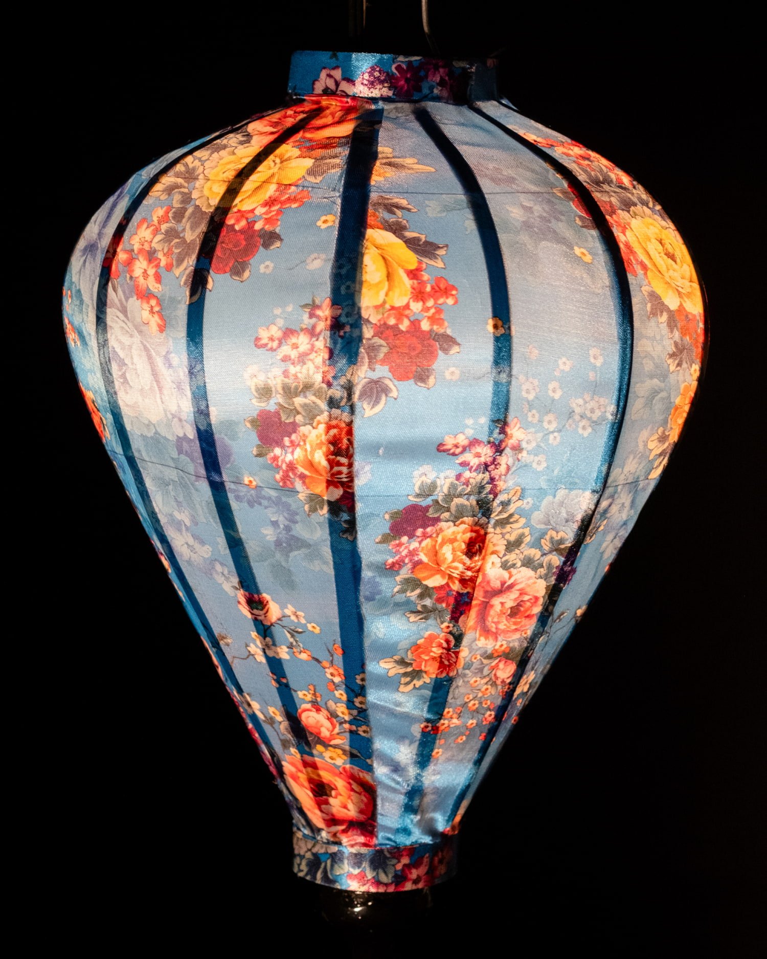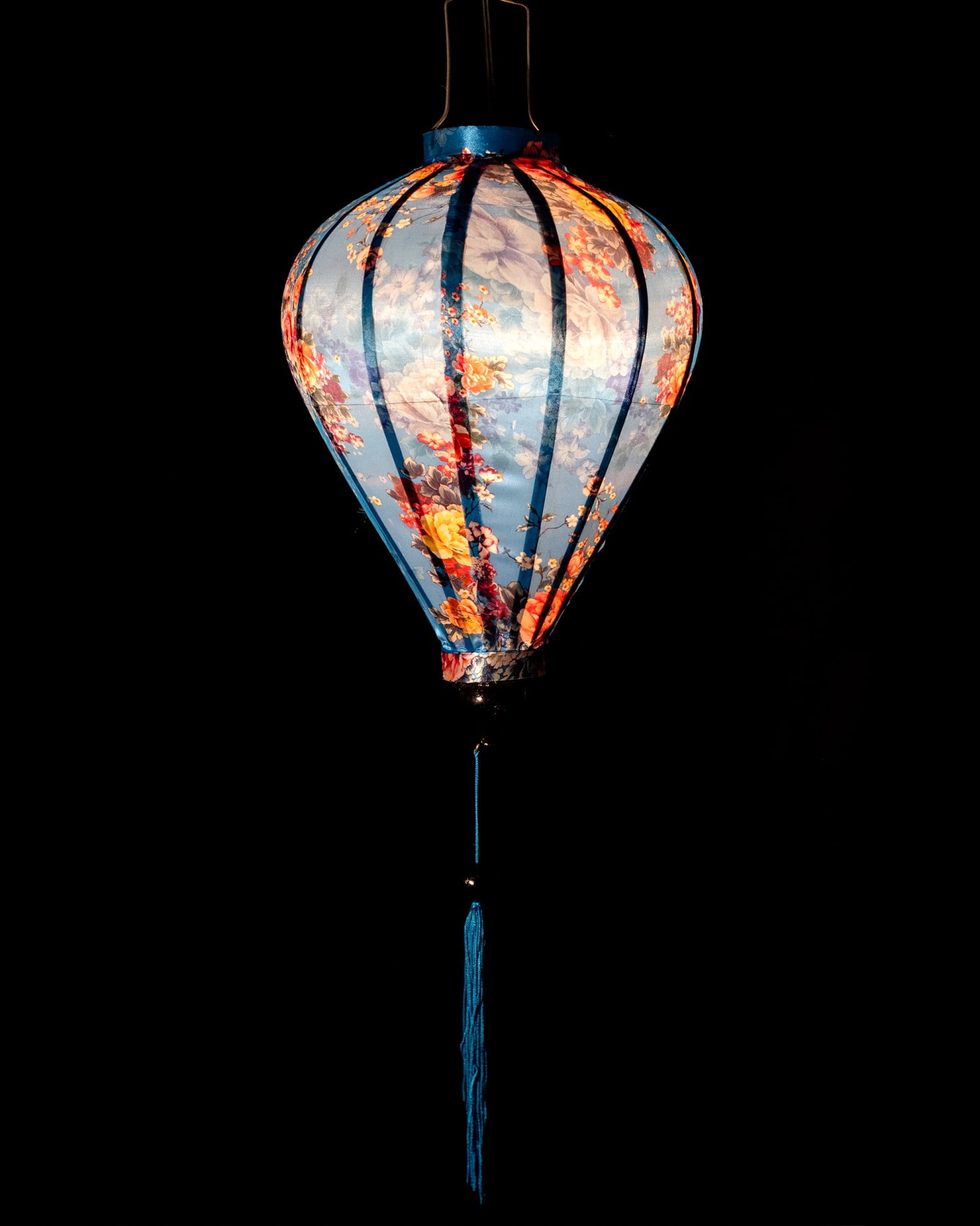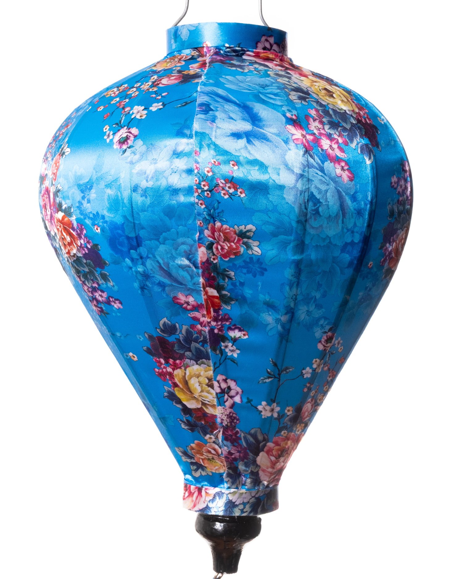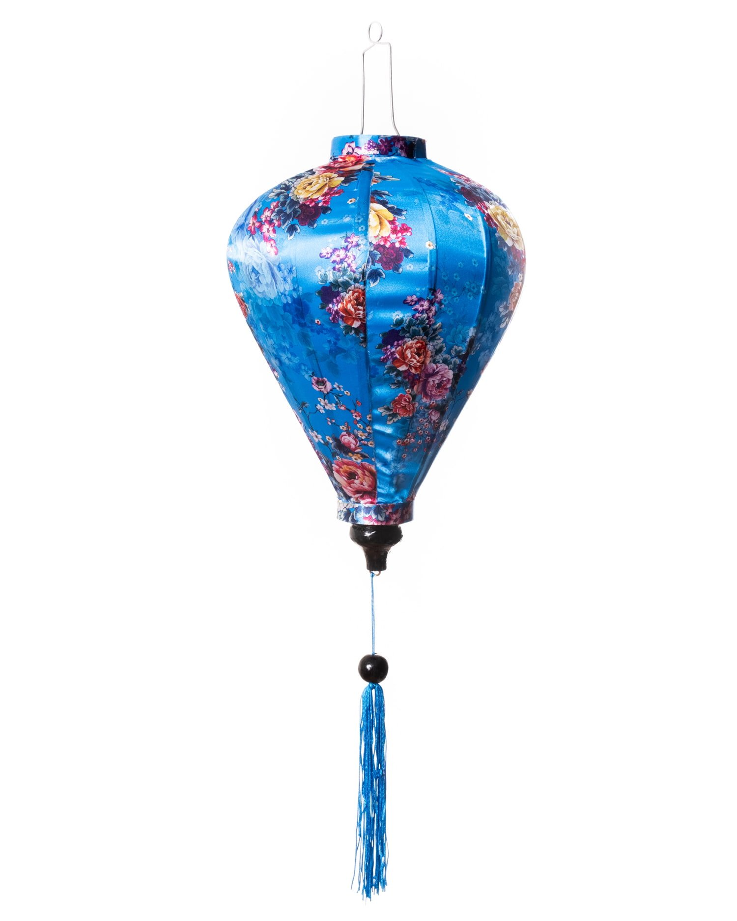 華やかな柄入り ベトナム伝統のホイアン・ランタン〔提灯〕 - ティアドロップ〔牡丹模様青〕 通販店