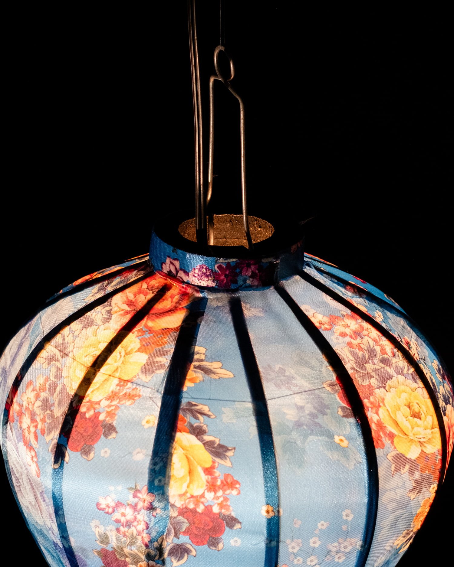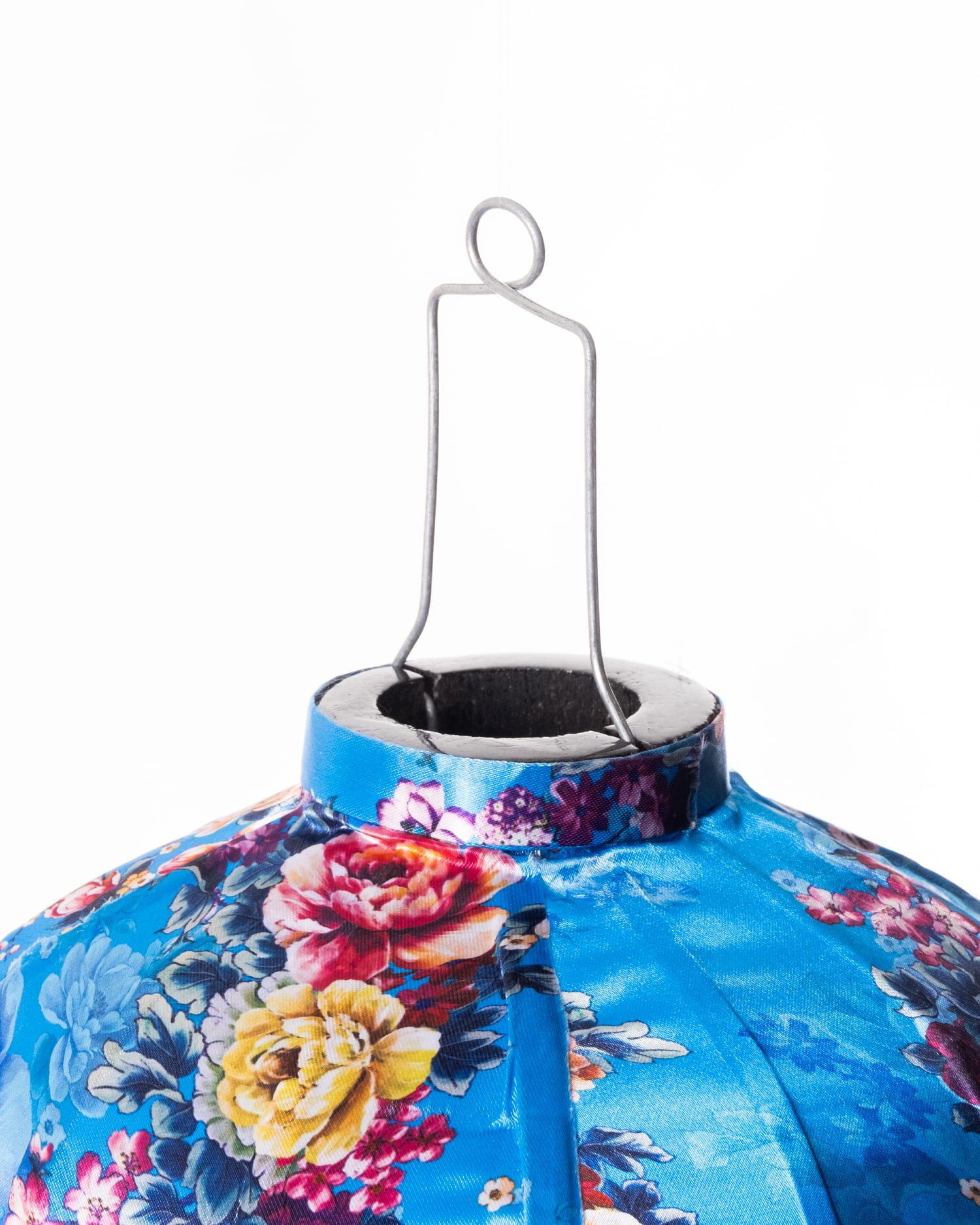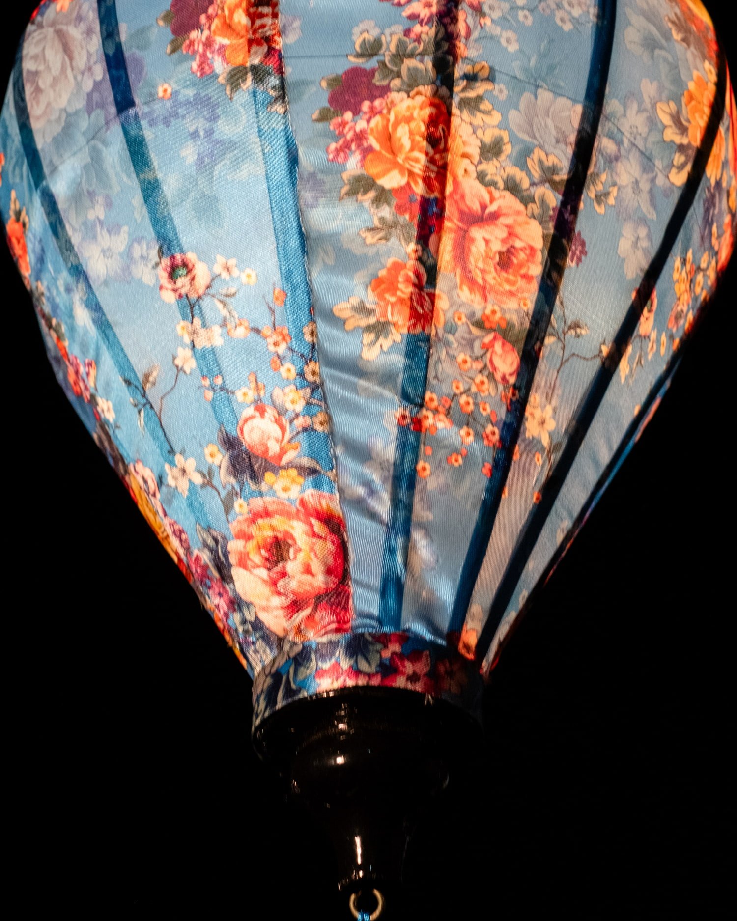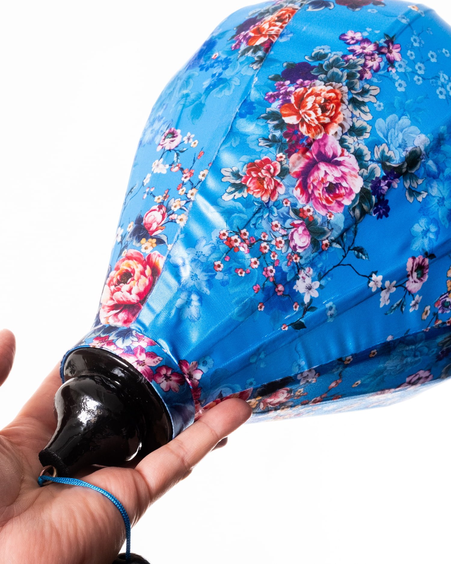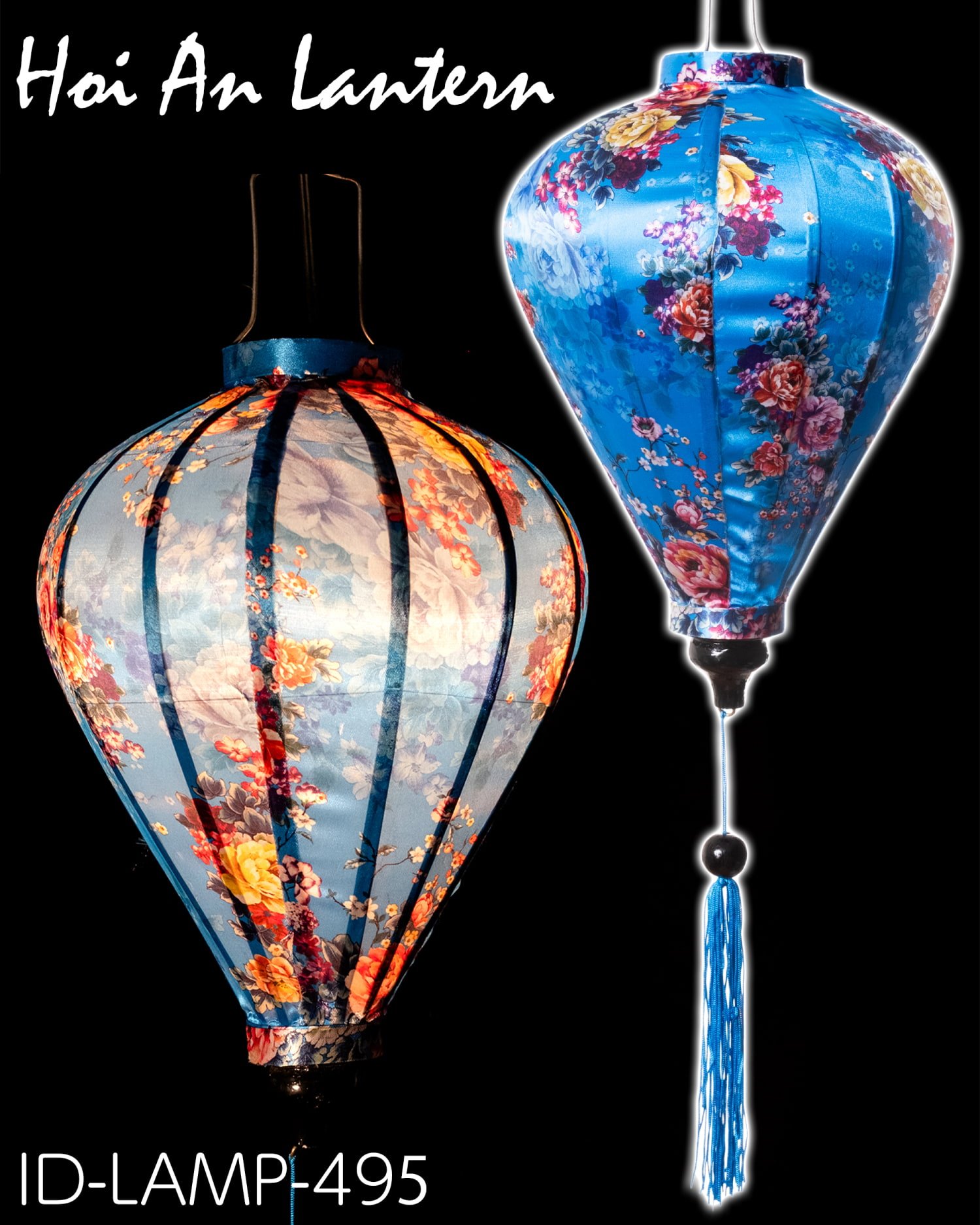 華やかな柄入り ベトナム伝統のホイアン・ランタン〔提灯〕 - ティアドロップ〔牡丹模様青〕 通販店