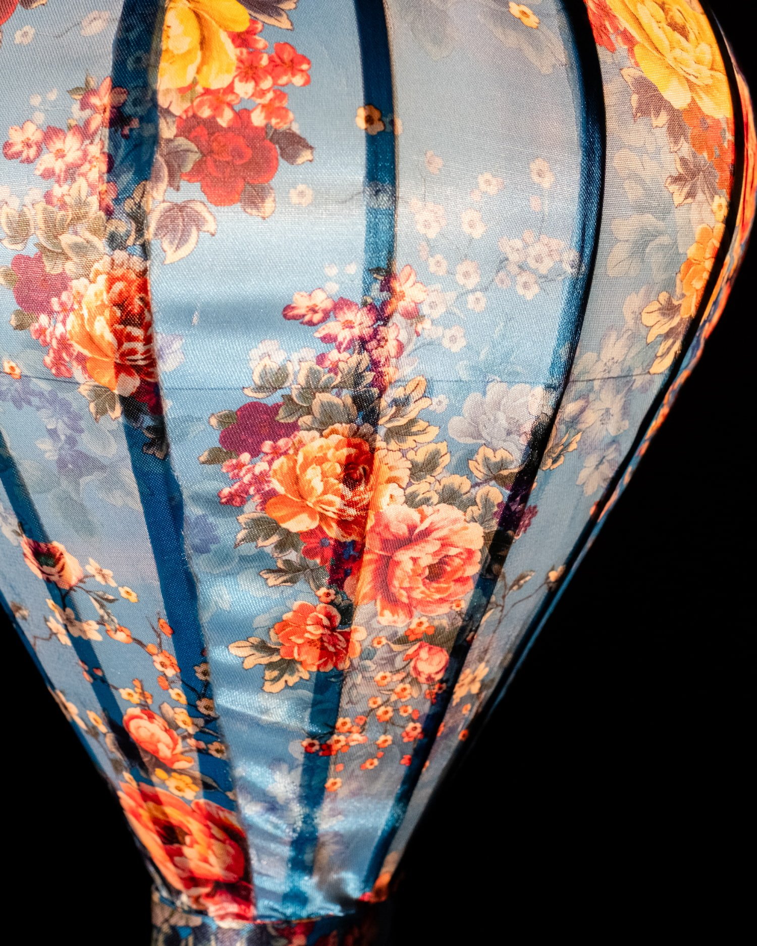 匿名希望様 華やかな柄入り ベトナム伝統のホイアン・ランタン〔提灯〕 - ほおずき型〔ボタニカル模様〕