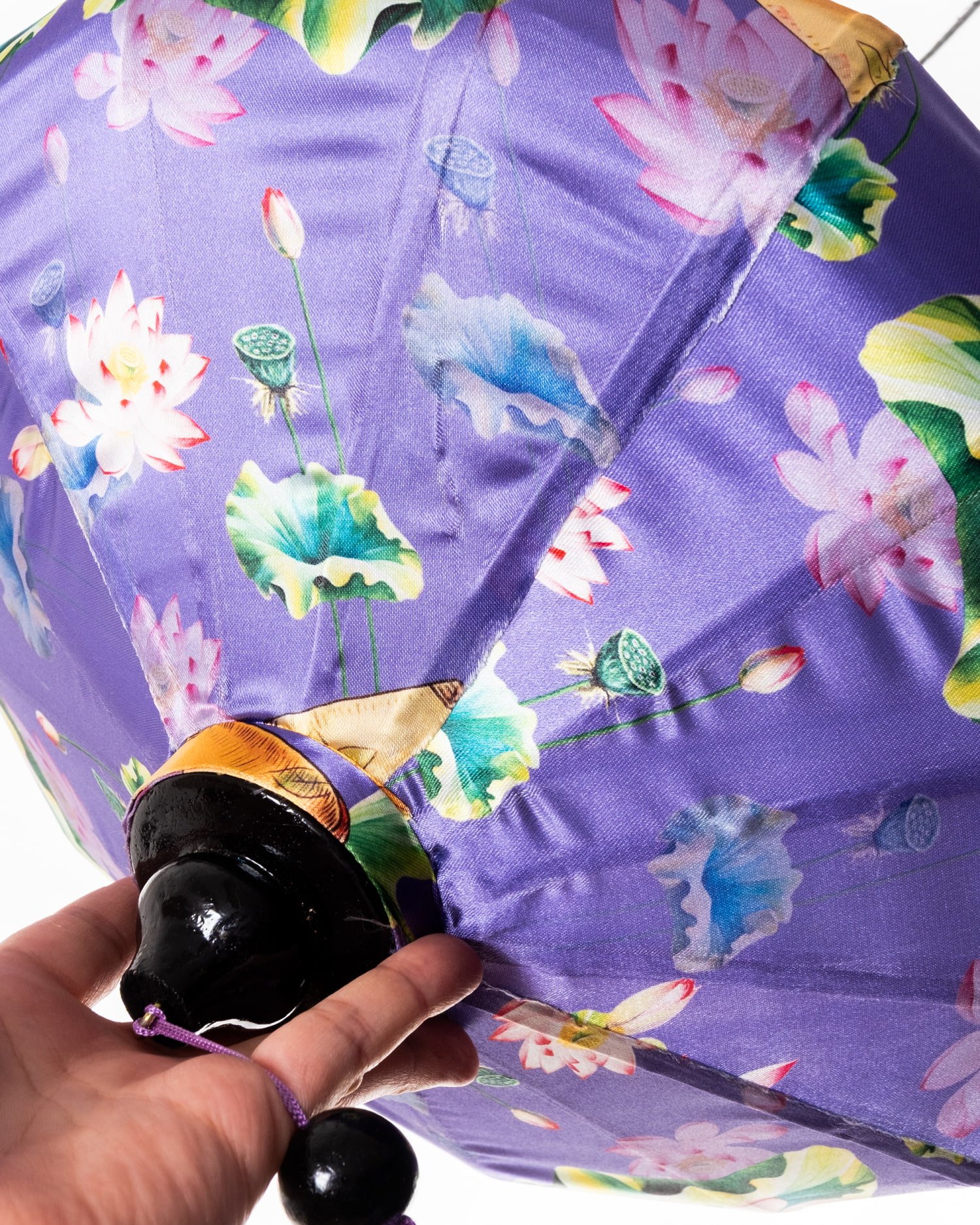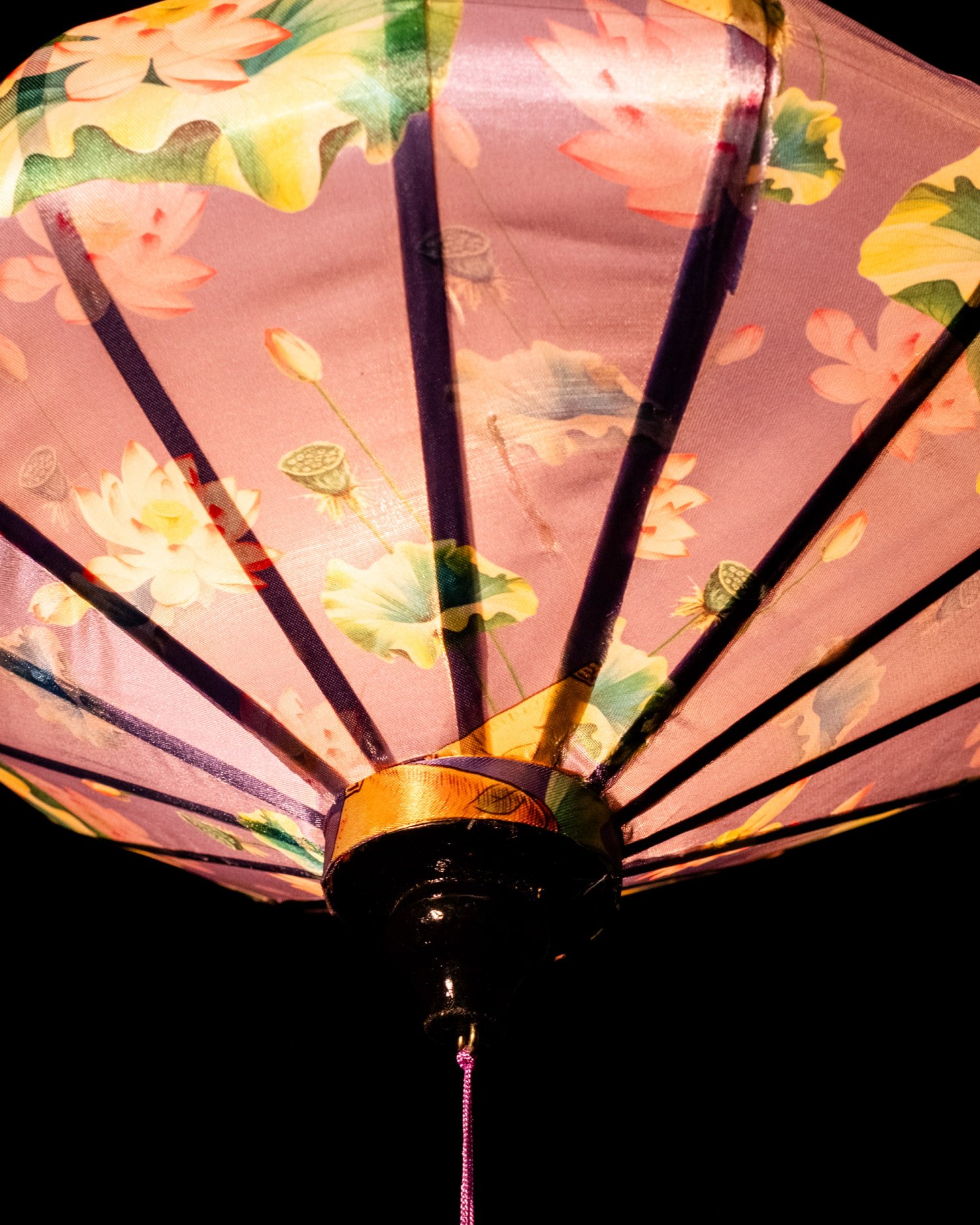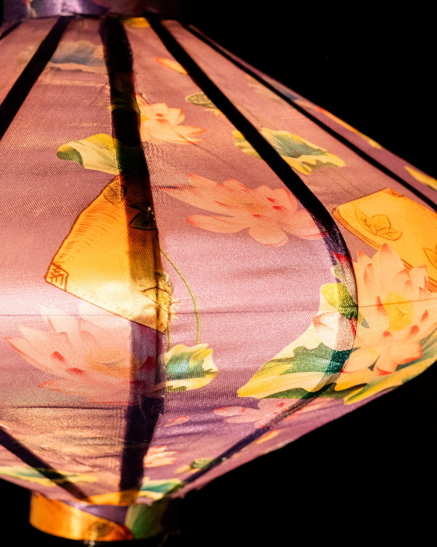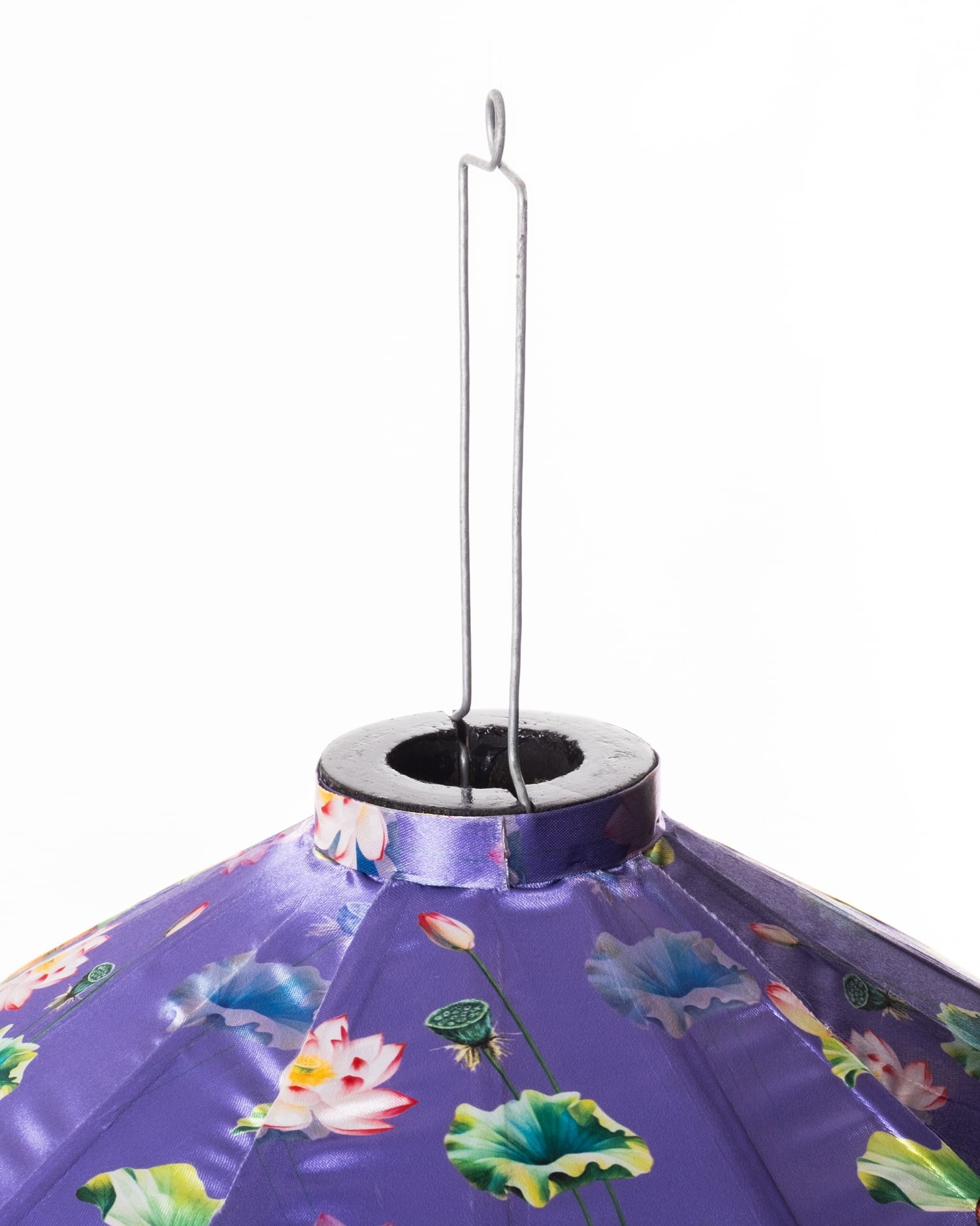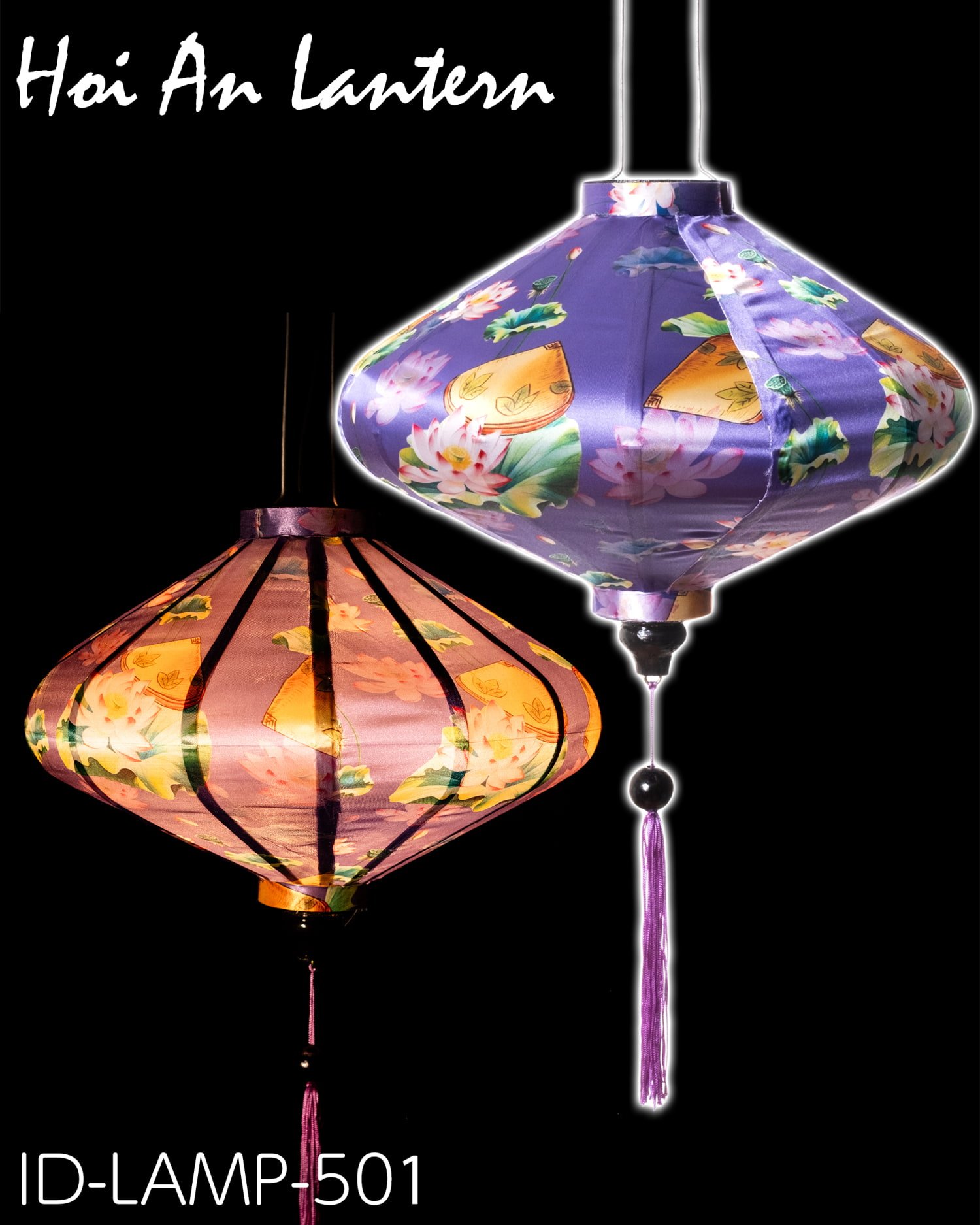 華やかな柄入り ベトナム伝統のホイアン・ランタン(提灯) - 薄ひし形〔睡蓮とノンラー模様紫〕 通販店