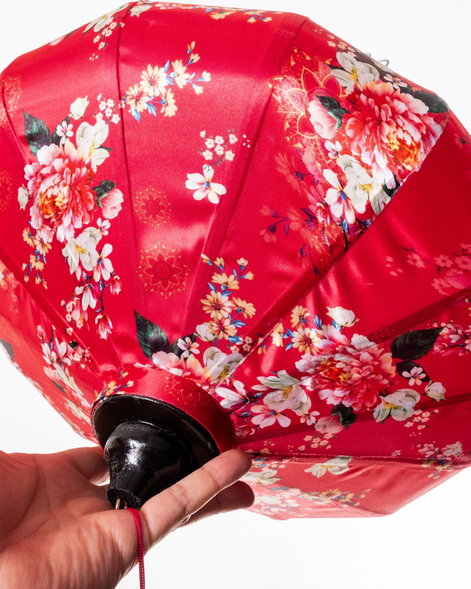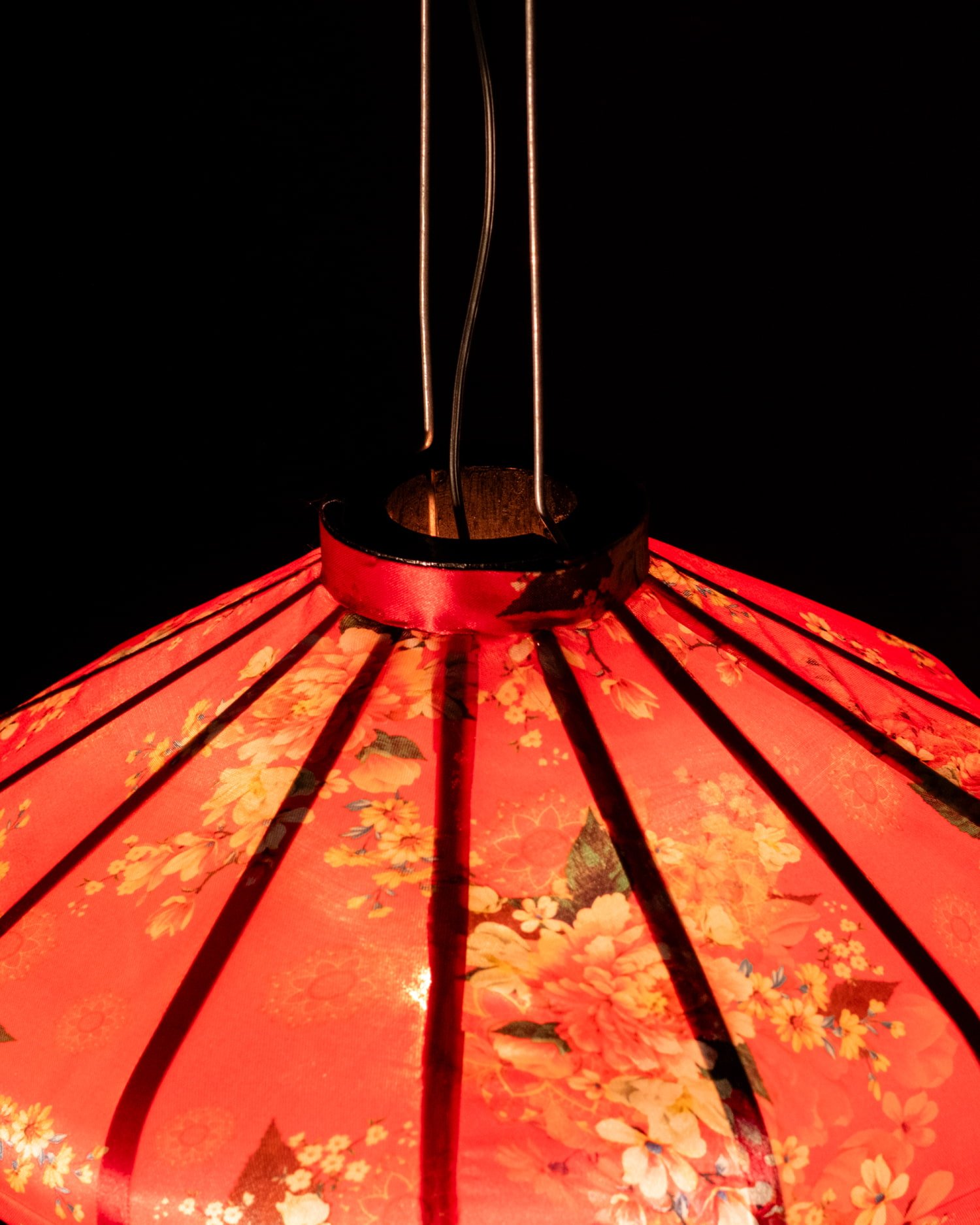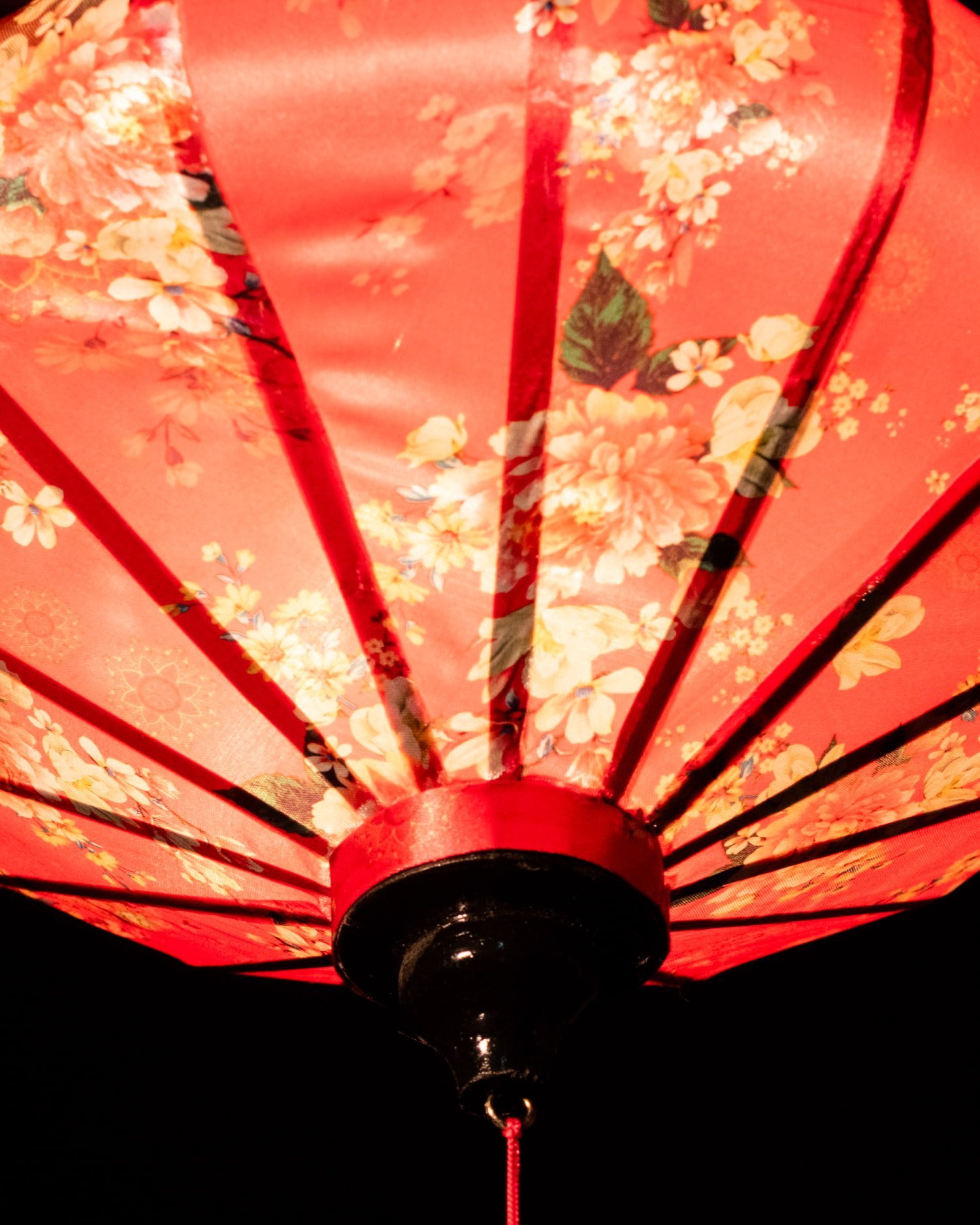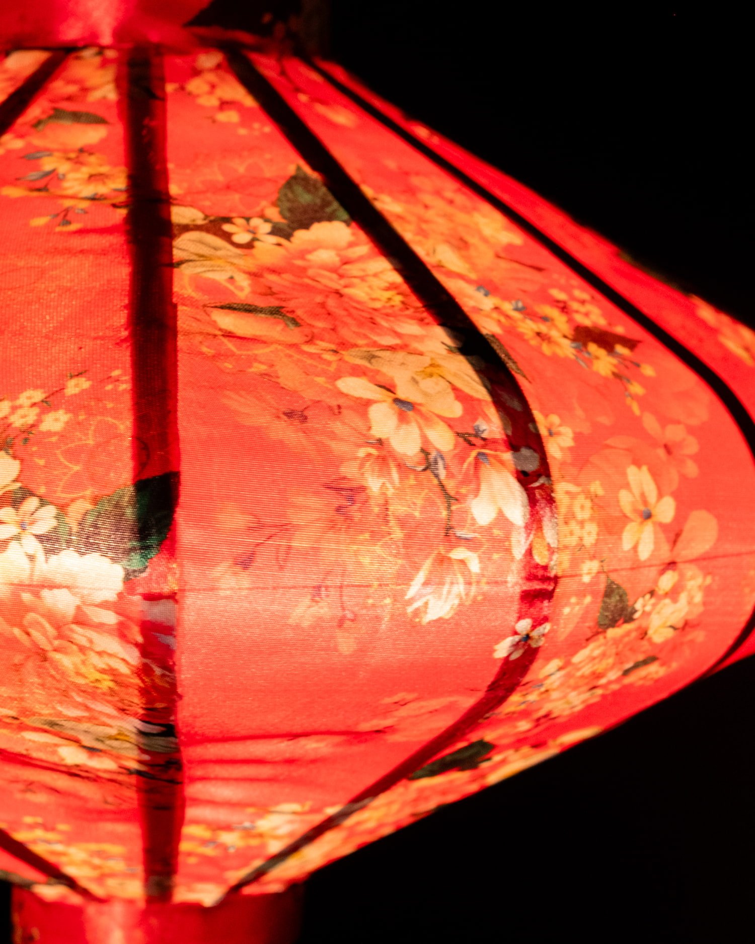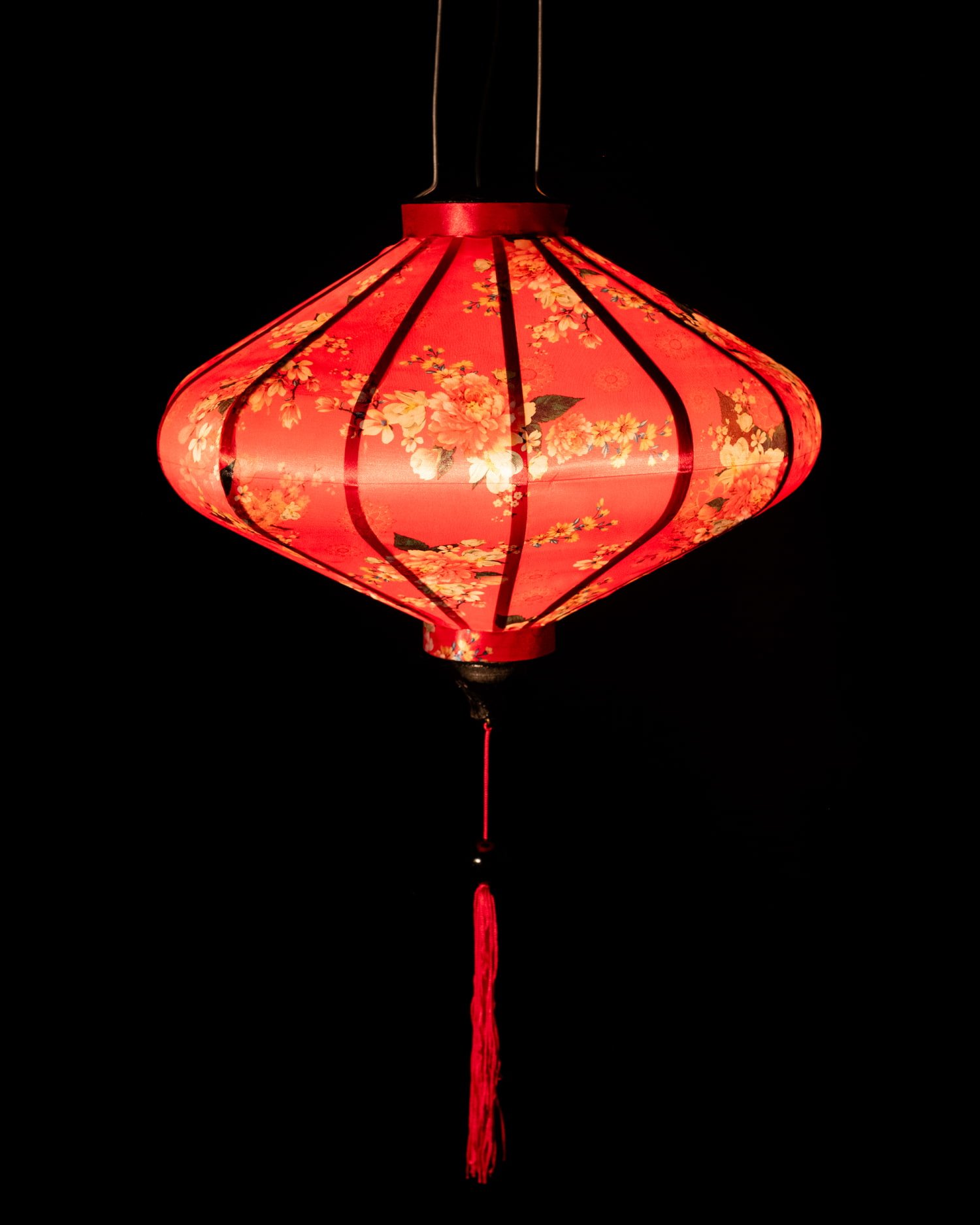 華やかな柄入り ベトナム伝統のホイアン・ランタン(提灯) - 薄ひし形〔牡丹と小花模様赤〕 通販店
