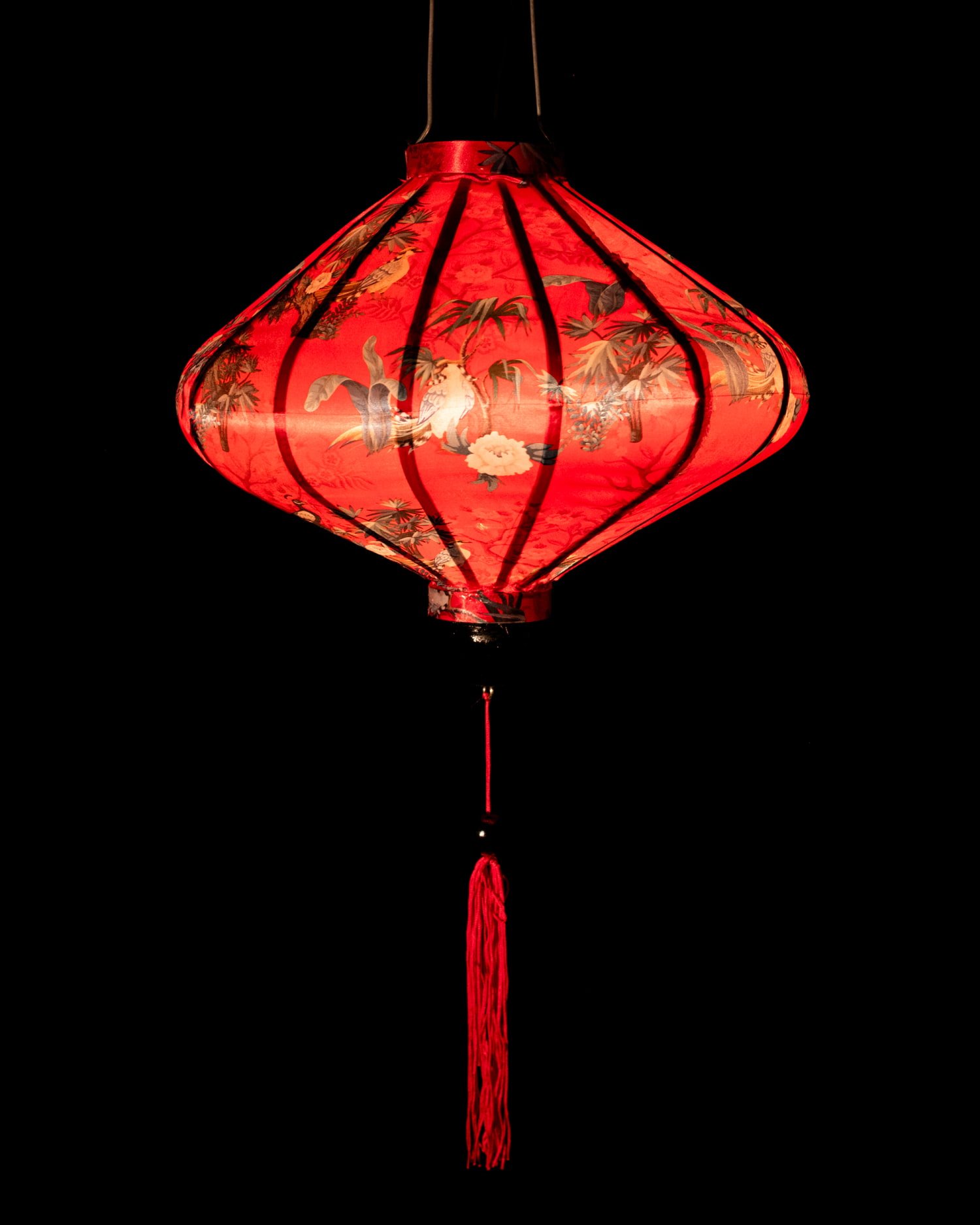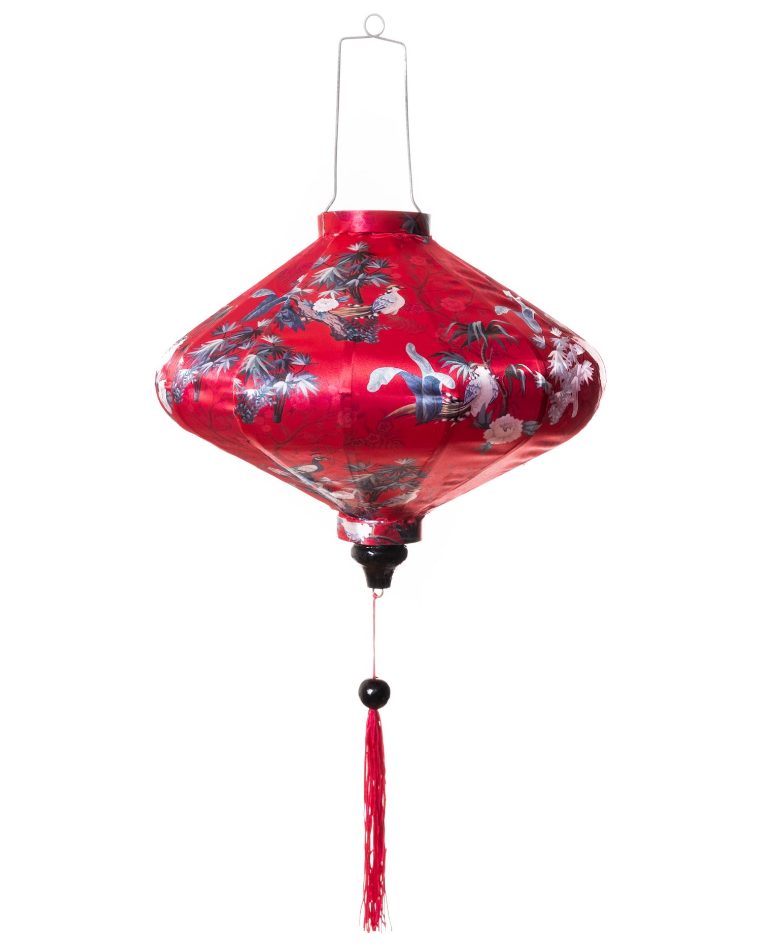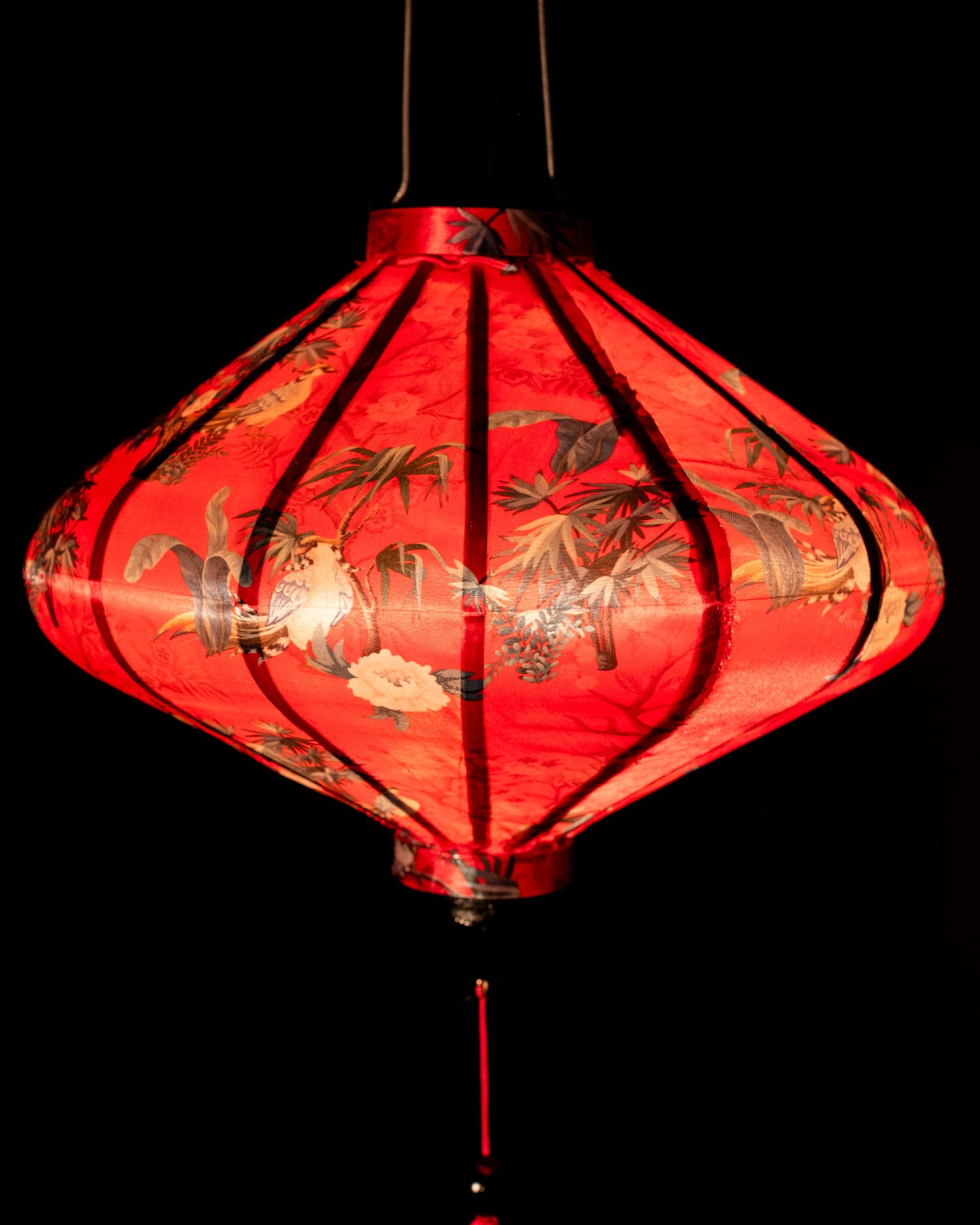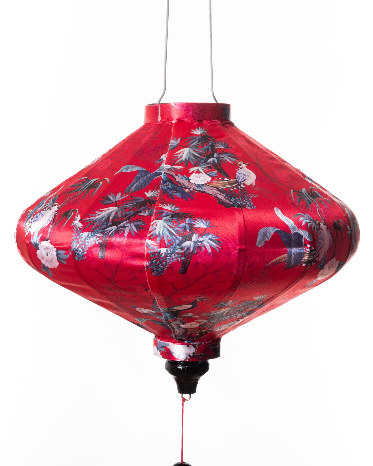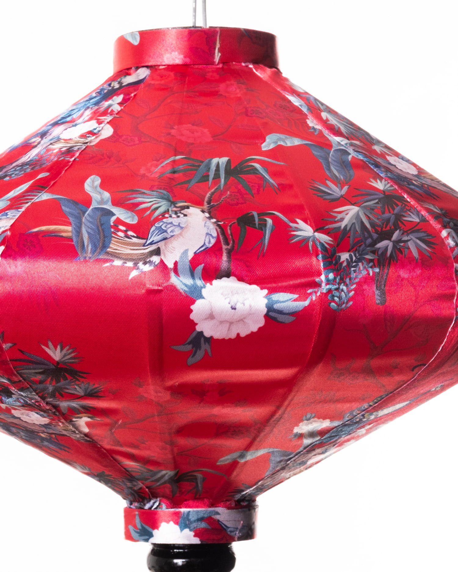 華やかな柄入り ベトナム伝統のホイアン・ランタン(提灯) - 薄ひし形〔花鳥模様赤〕 通販店