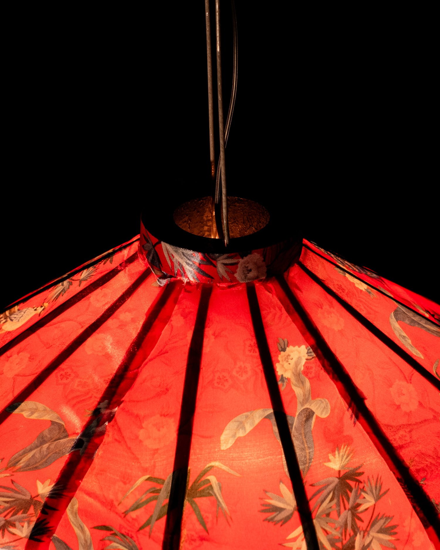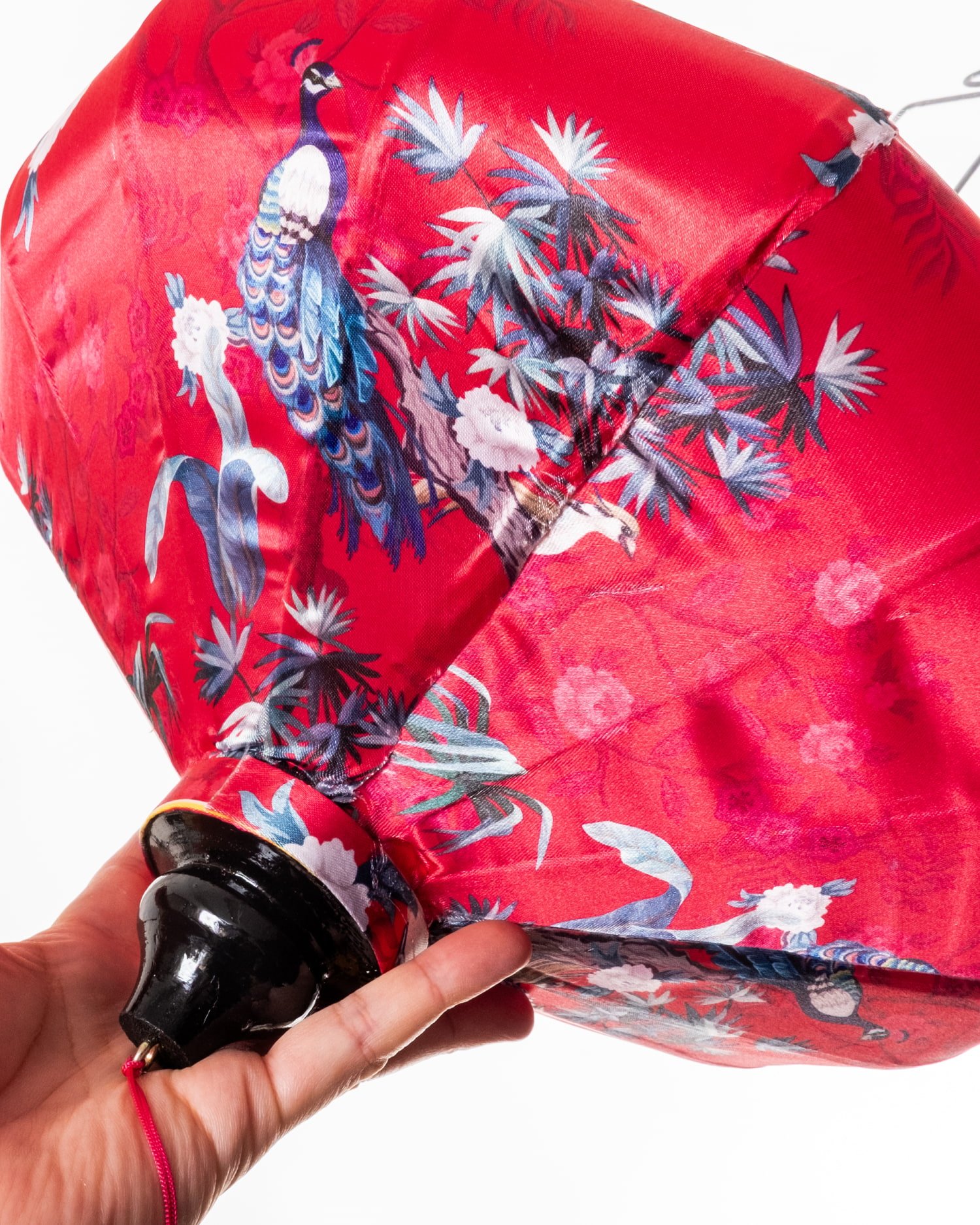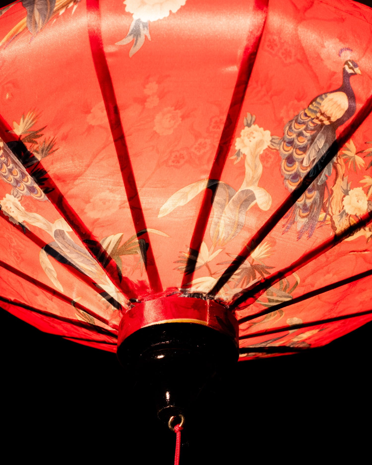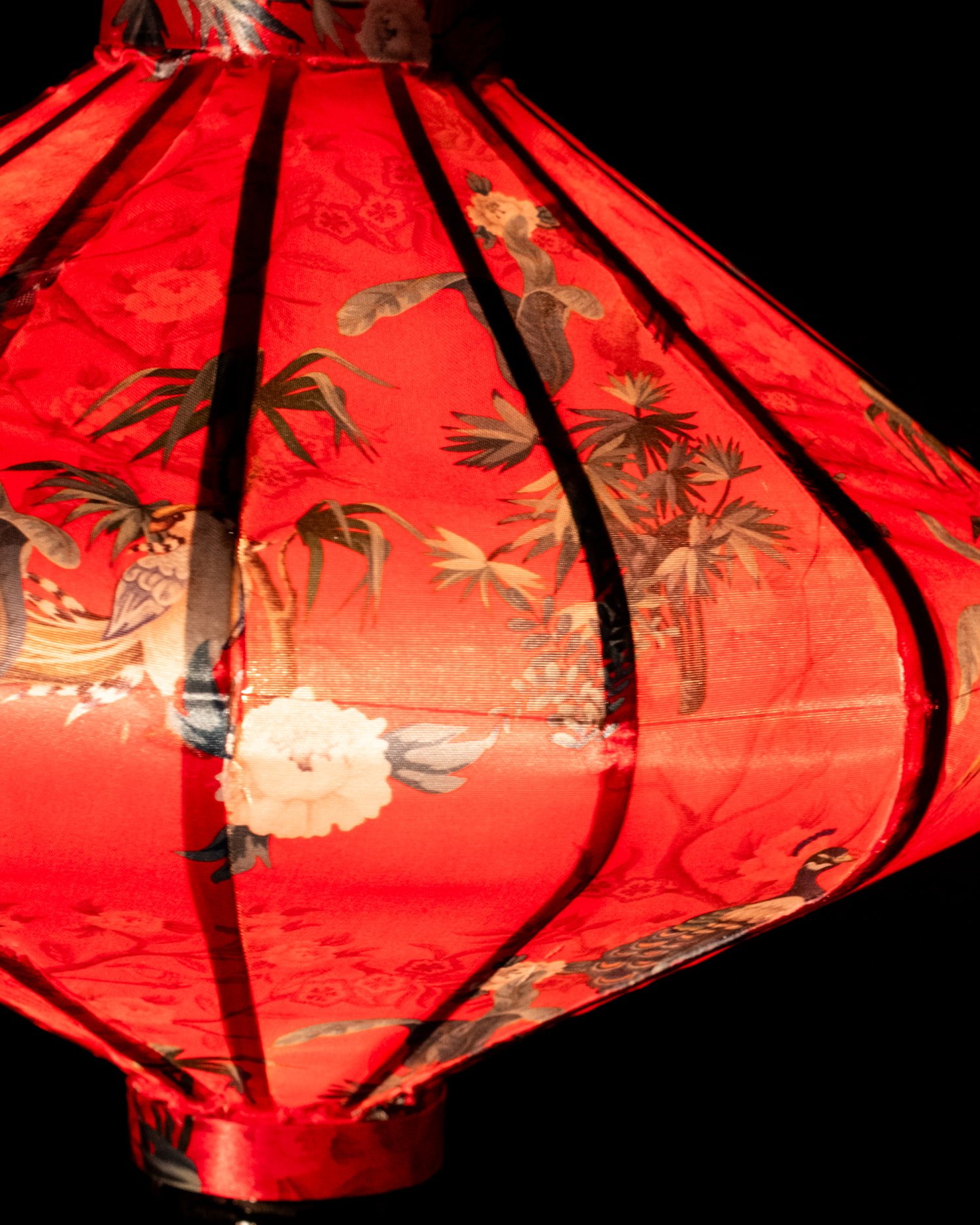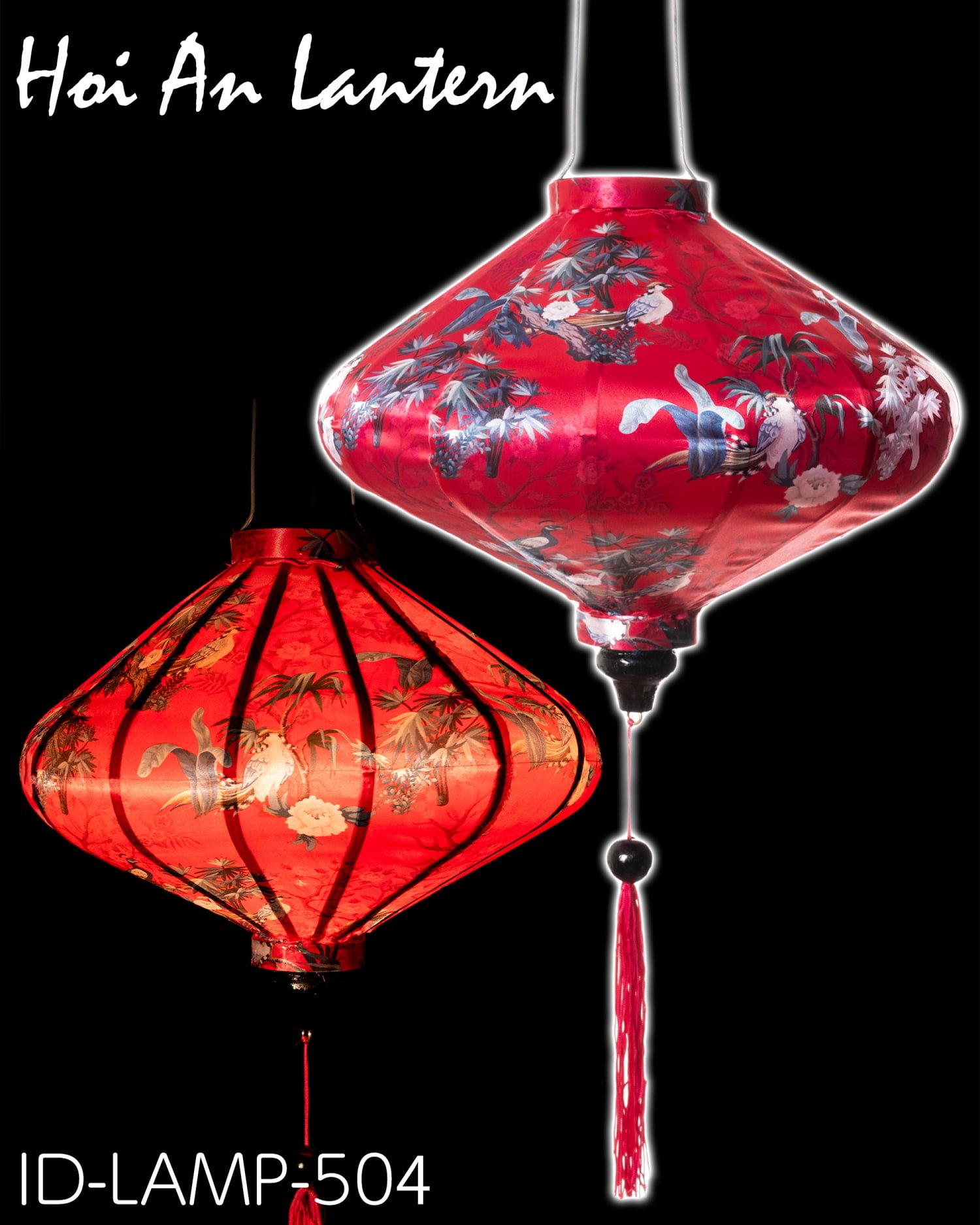 華やかな柄入り ベトナム伝統のホイアン・ランタン(提灯) - 薄ひし形〔花鳥模様赤〕 通販店