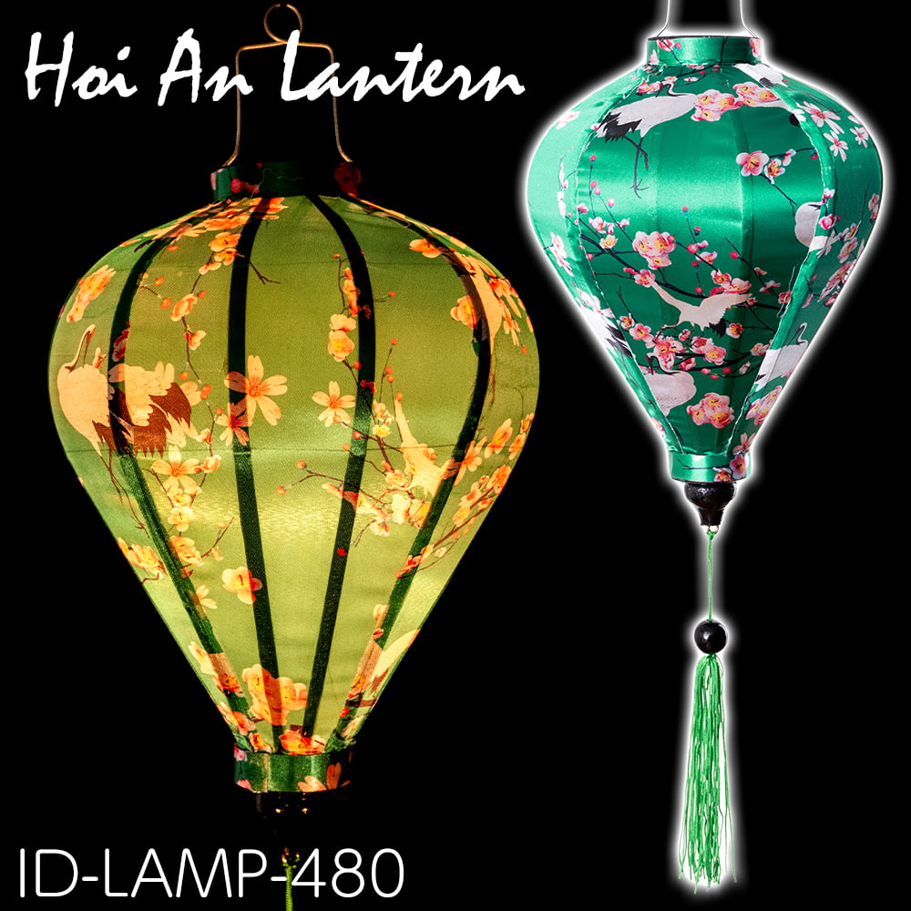 【3個セット】華やかな柄入り ベトナム伝統のホイアン・ランタン〔提灯〕 - ほおずき型〔梅鶴模様〕 通販店