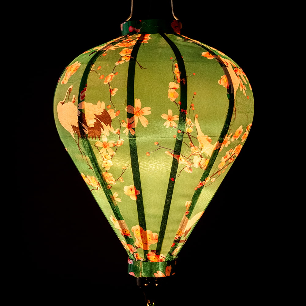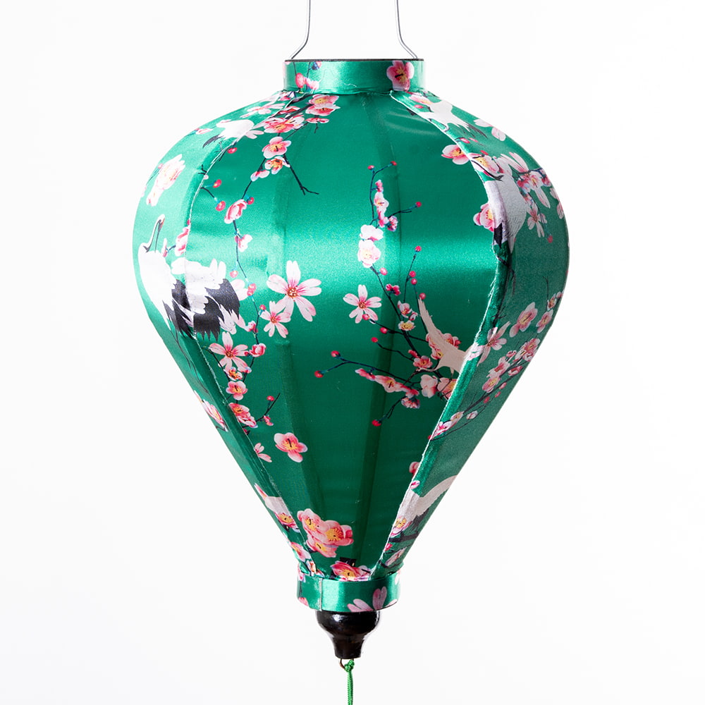 華やかな柄入り ベトナム伝統のホイアン・ランタン〔提灯〕 - ほおずき型〔梅鶴模様〕 x 3個