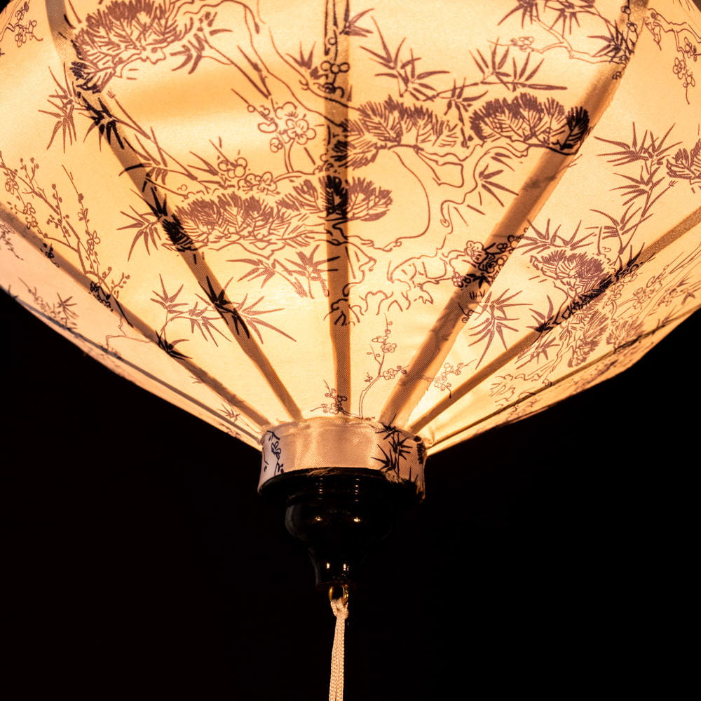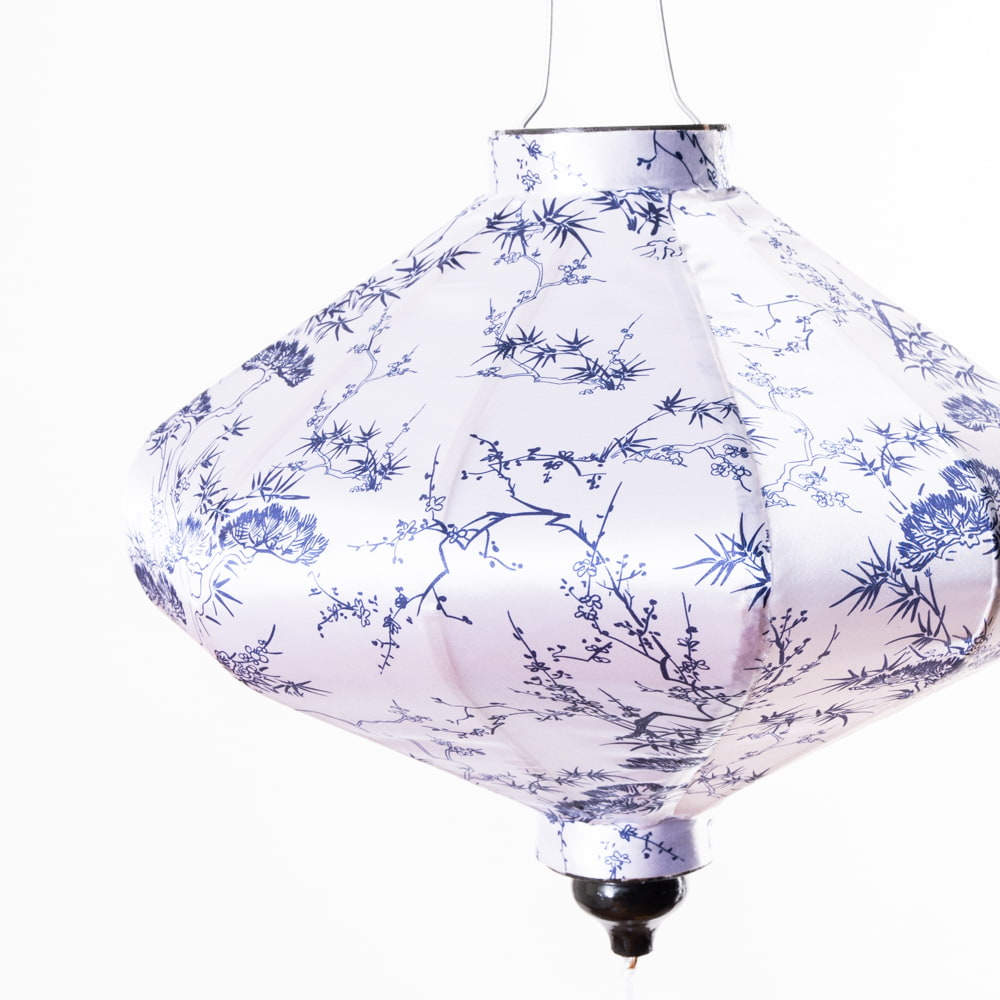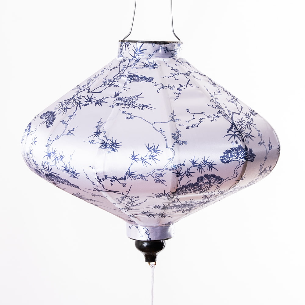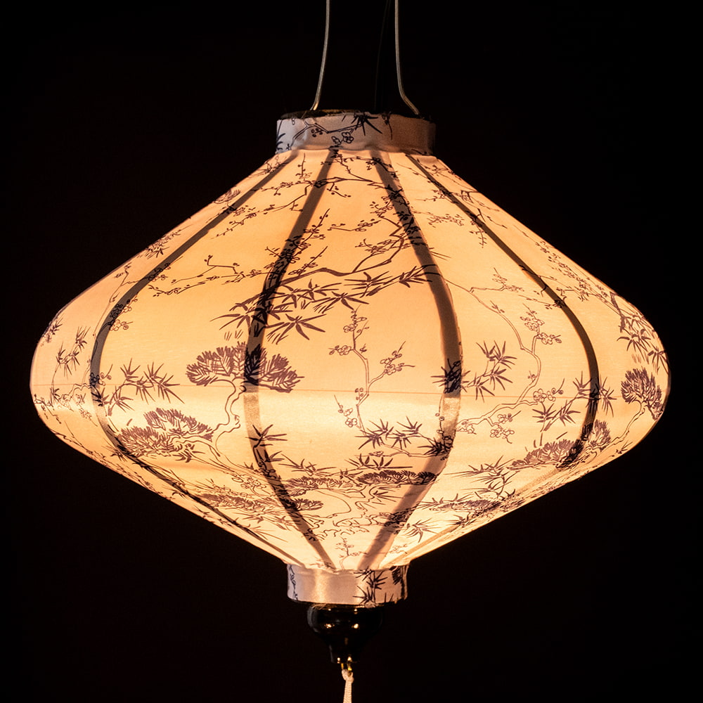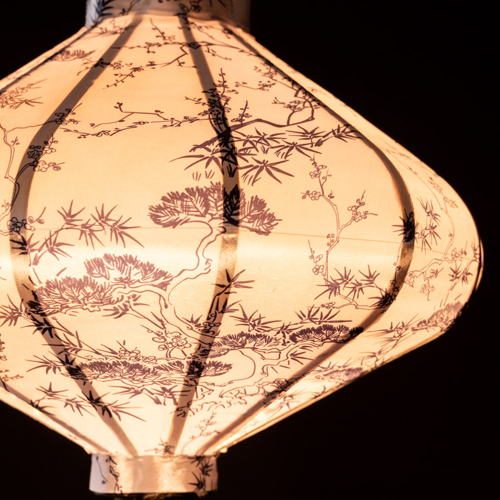 華やかな柄入り ベトナム伝統のホイアン・ランタン(提灯) - 薄ひし形〔歳寒三友〕 x 3個