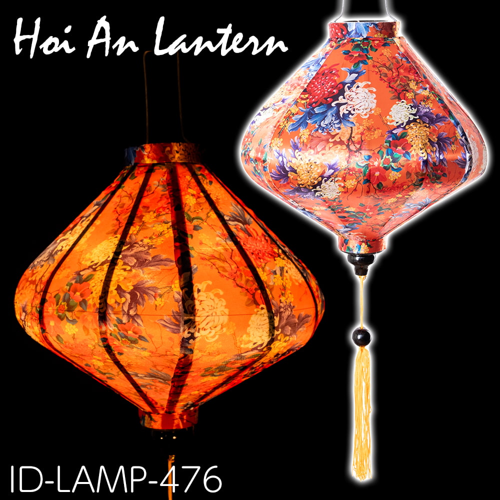 【5個セット】華やかな柄入り ベトナム伝統のホイアン・ランタン(提灯) - ダイヤ型〔菊椿模様〕 通販店