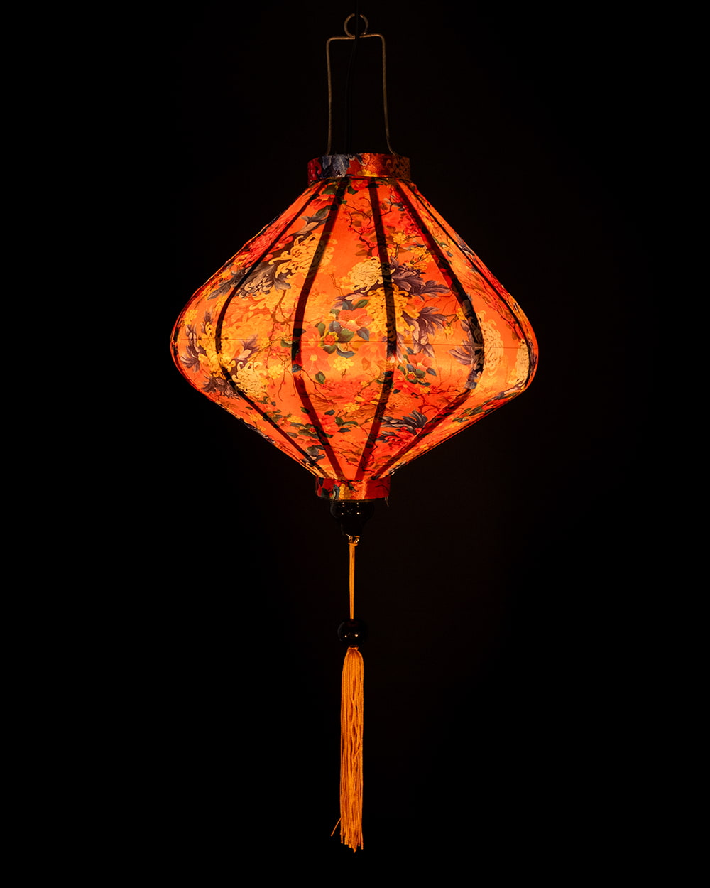 華やかな柄入り ベトナム伝統のホイアン・ランタン(提灯) - ダイヤ型〔菊椿模様〕 x 5個