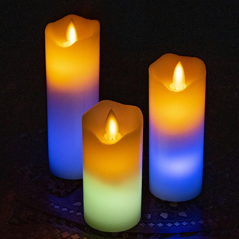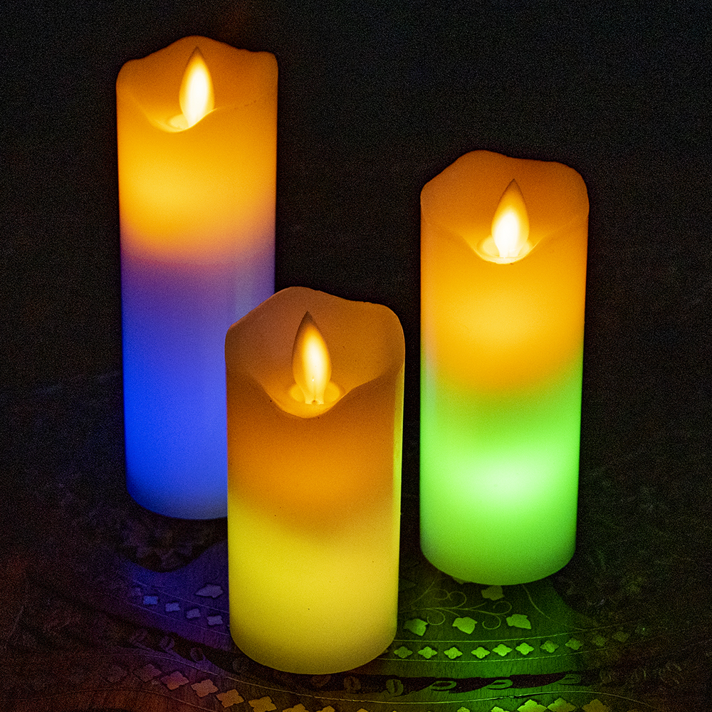 本物のロウで作られた ゆらめく灯火 ロウソク風LEDキャンドルライト レインボー〔5cm×10cm〕 x 5個