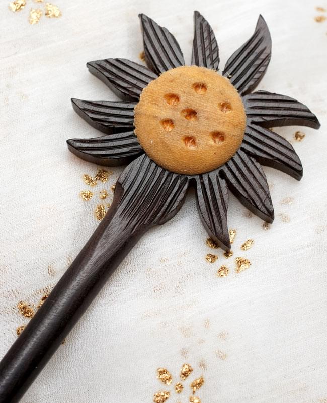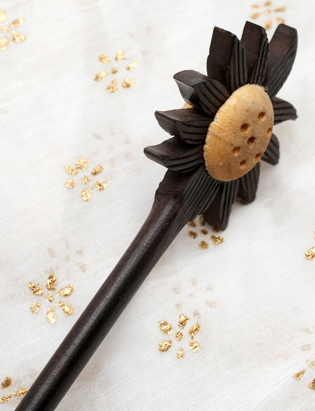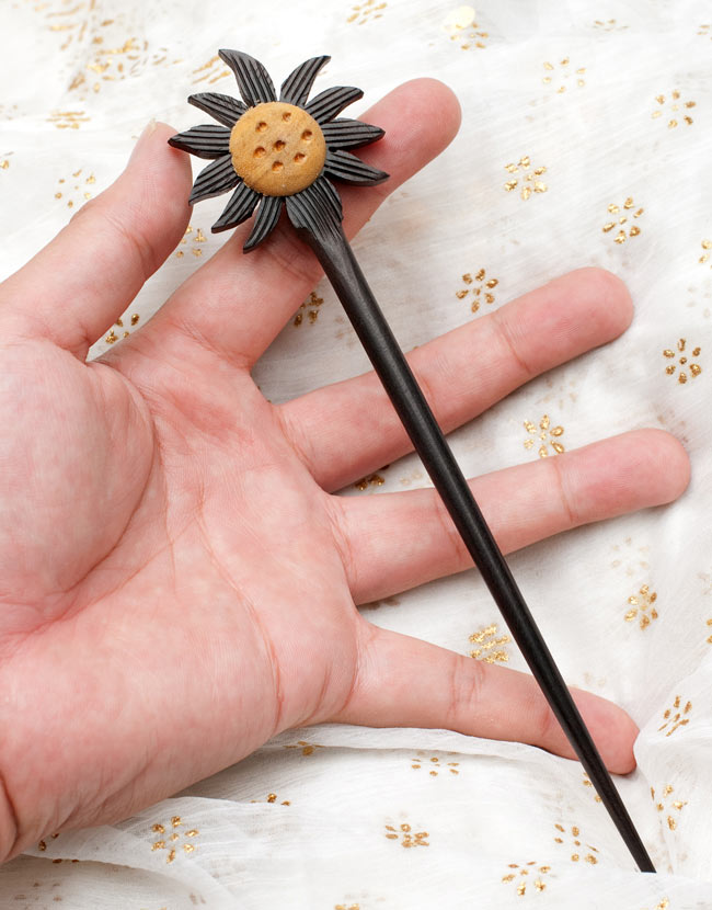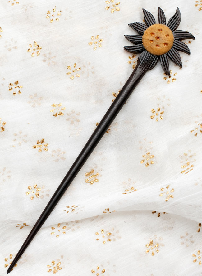 ココナッツの木で作られた、シックなモチーフが特徴のウッドかんざし。ウッド素材ならではのナチュラルな温かみのある風合いと、優しい雰囲気が魅力的。