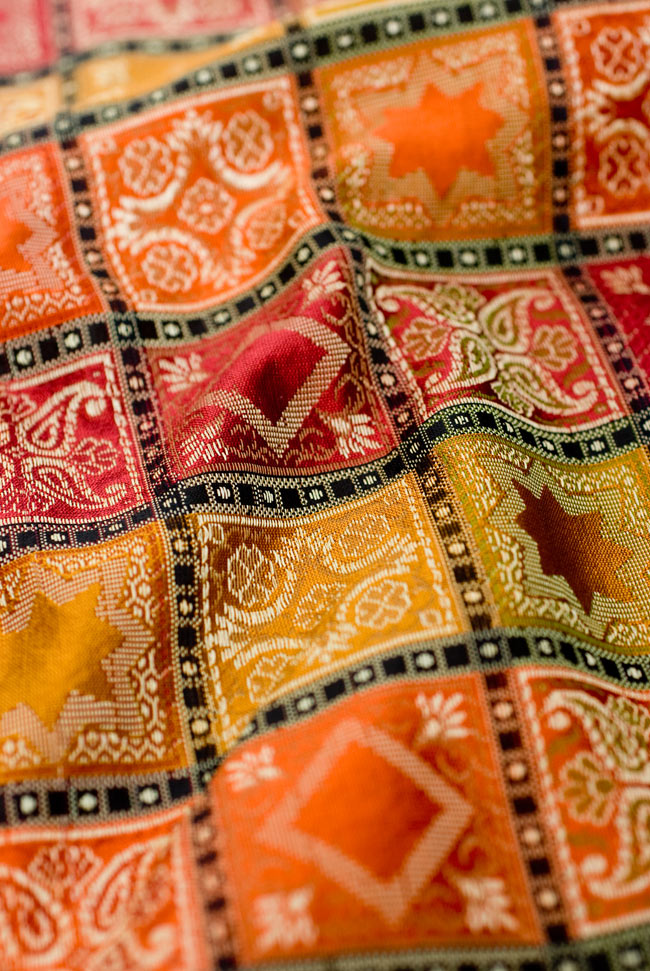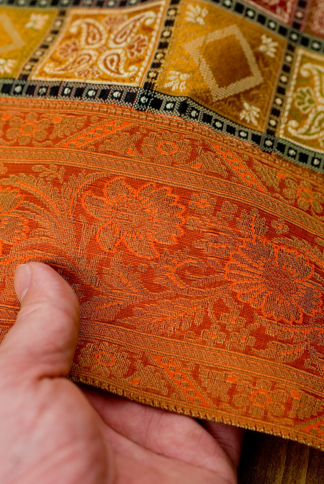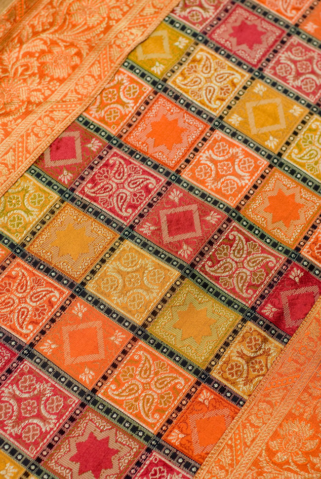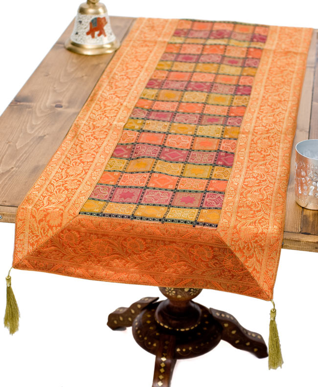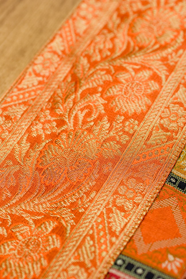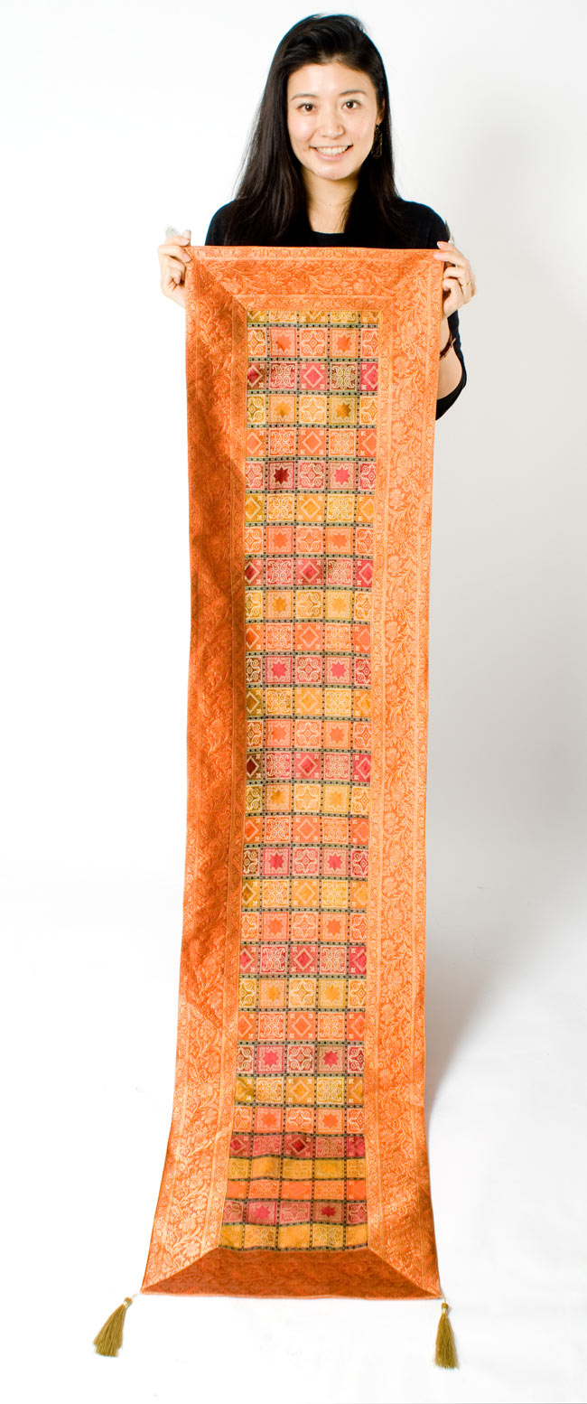 〔約180cm×40cm〕インドの金糸入りテーブルランナー - オレンジ×マルチカラー 通販店