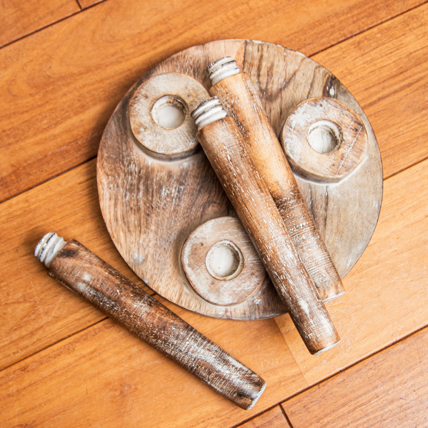 素材には、インドで再生可能資源として注目されるマンゴーウッドを使用。果実を収穫した後に伐採・再植林されるため、持続可能なエコ素材として人気です。