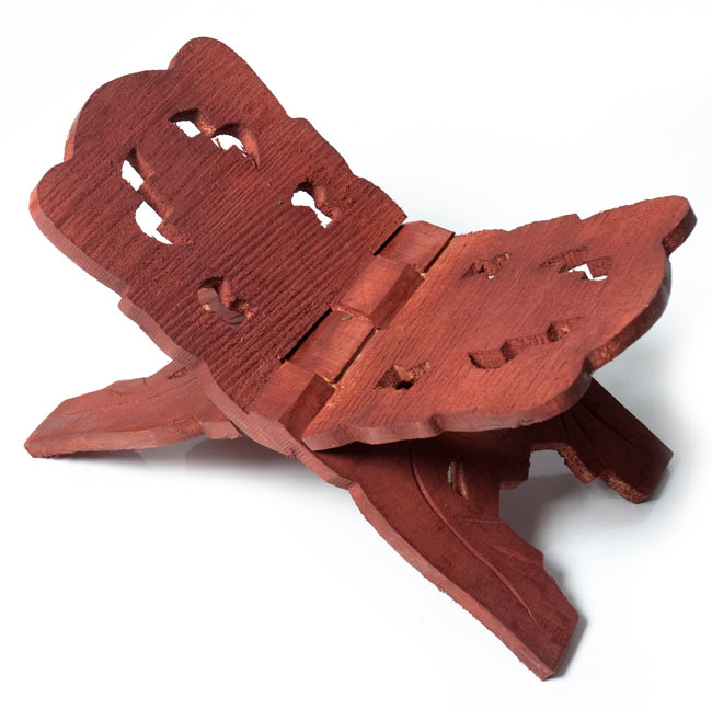 インドで作られた木製の書見台。イスラーム教徒がコーラン(クルアーン)や聖典を置いて読み上げるために使っているものです。読書に便利なブックスタンドや、譜面台としてお使いいただけます。| 素材 | 素材:木 |