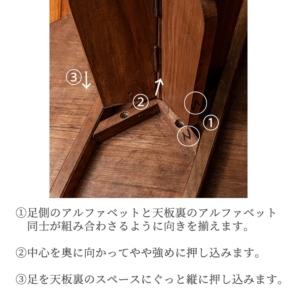 [ちょっと訳あり]カシミールの細密彫刻 大輪花のサイドテーブル ウォールナット製 直径45.5cmの商品写真 13枚目 組み立てには少しコツが要ります。