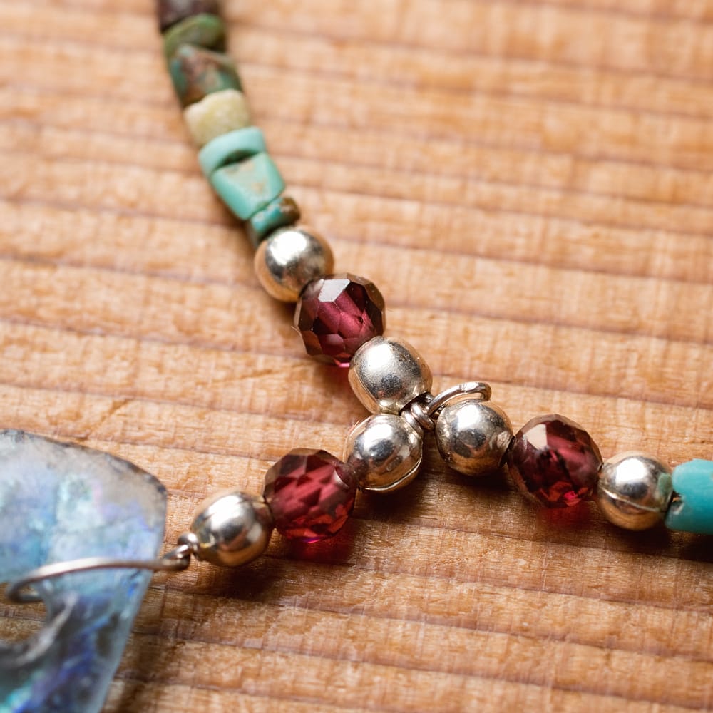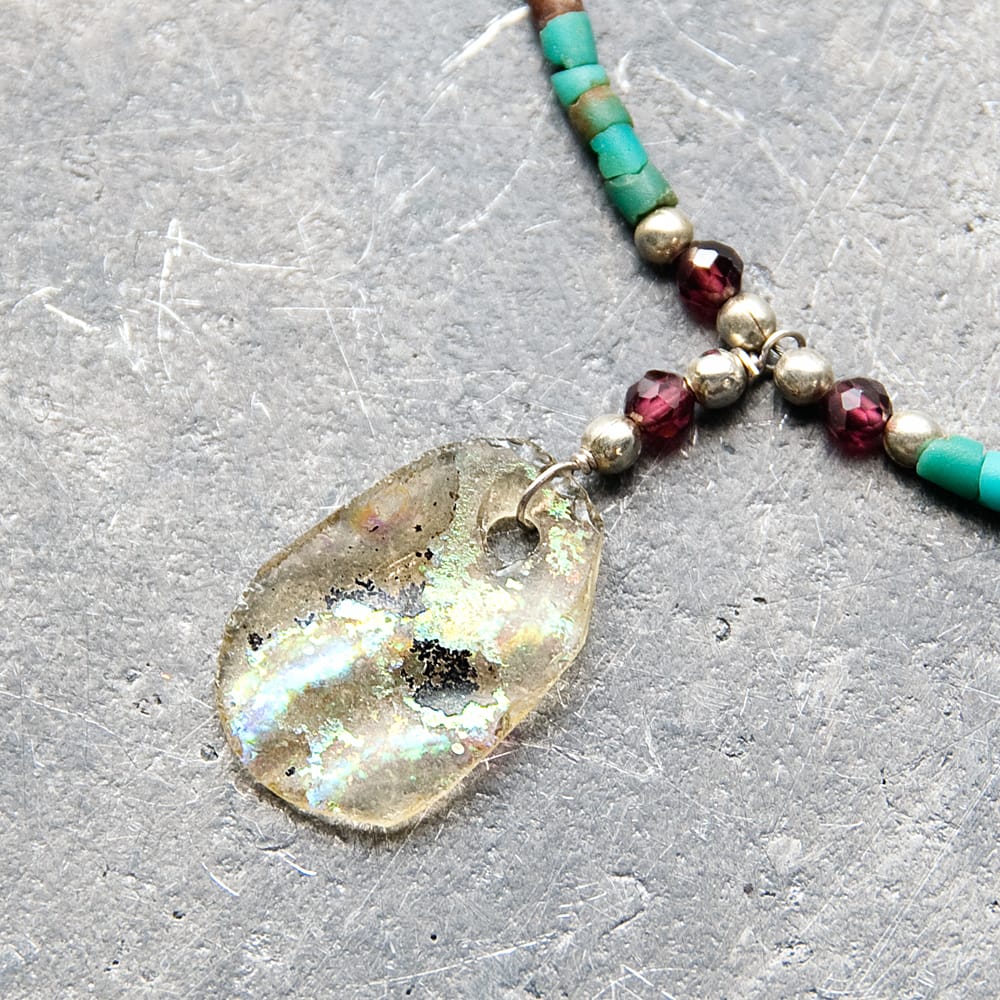 〔一点もの〕ターコイズとローマングラスのペンダント付きネックレス ローマ時代からの贈り物 通販店