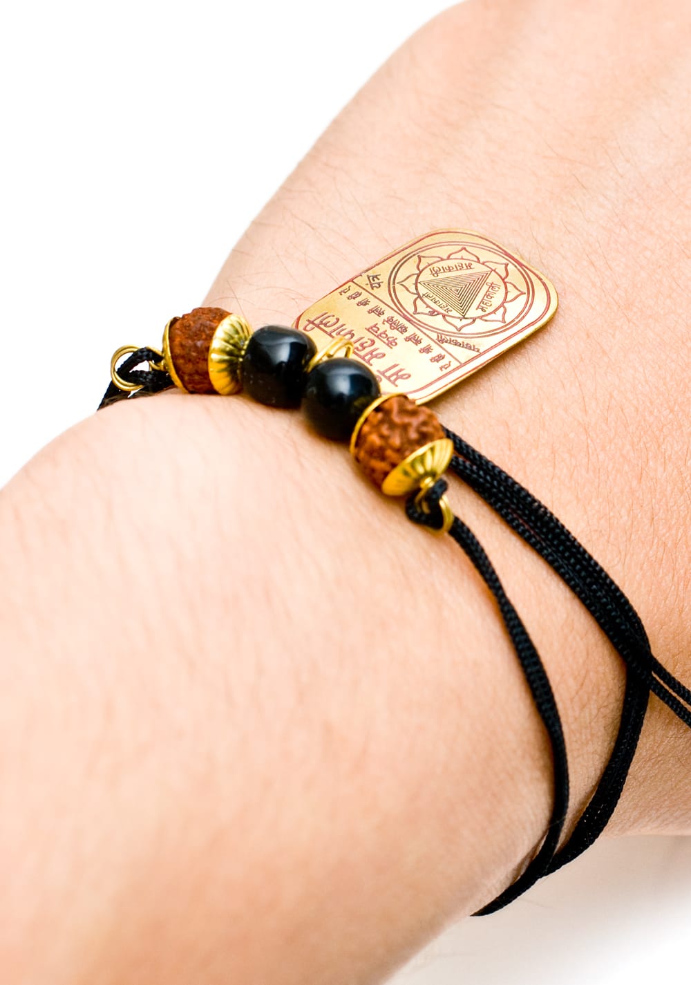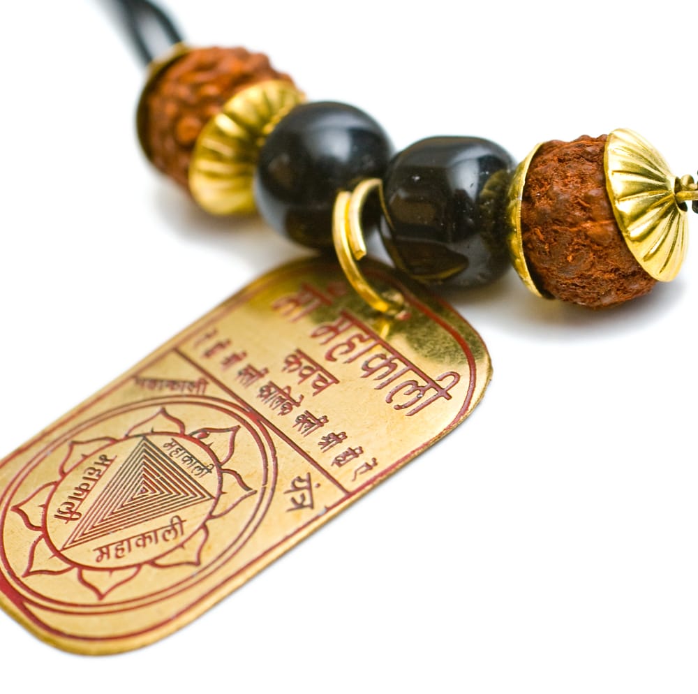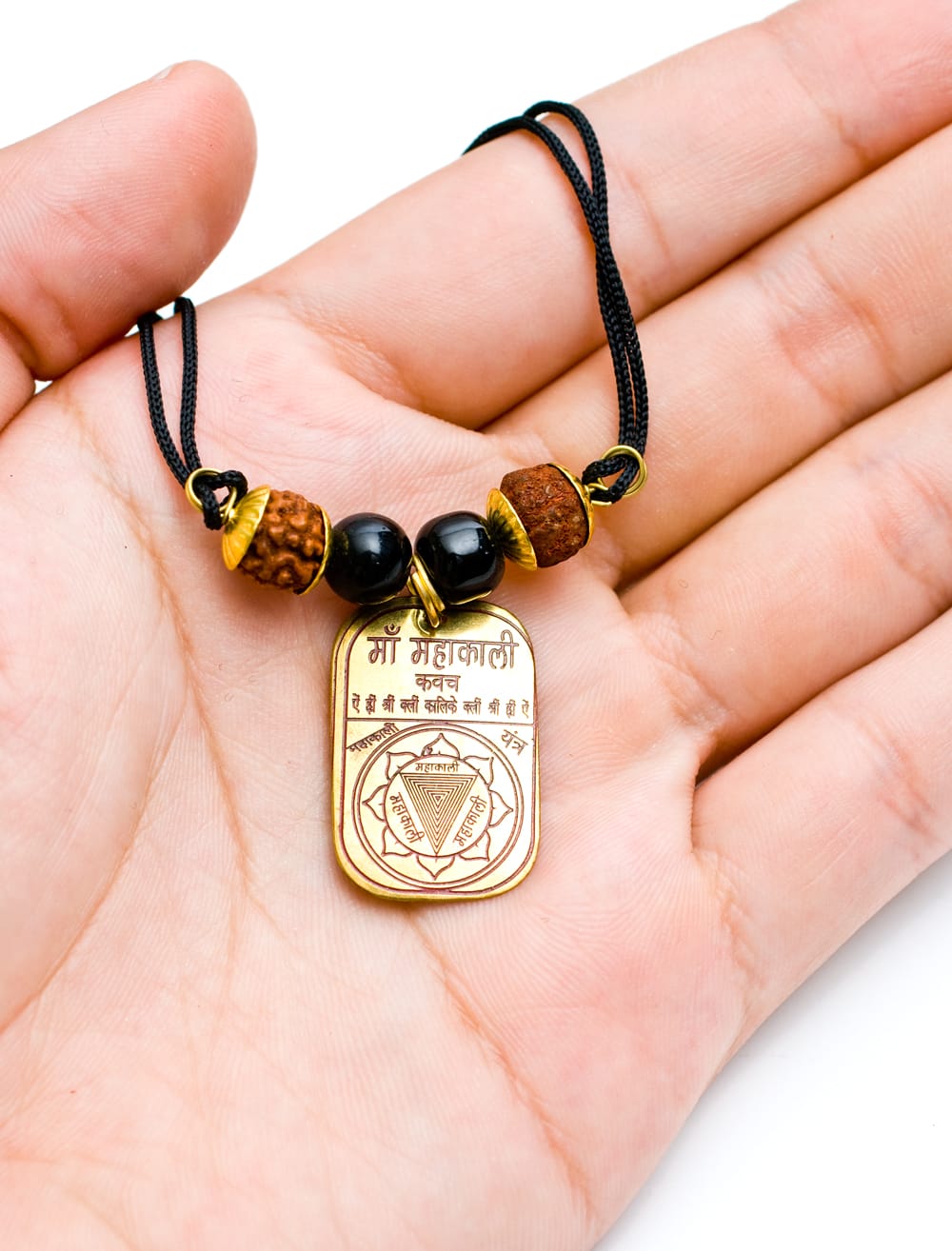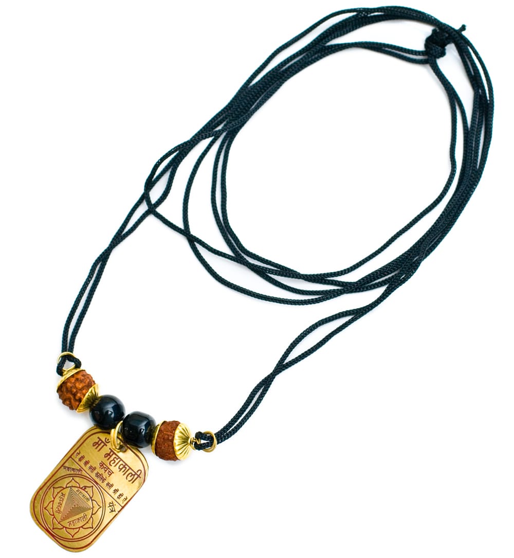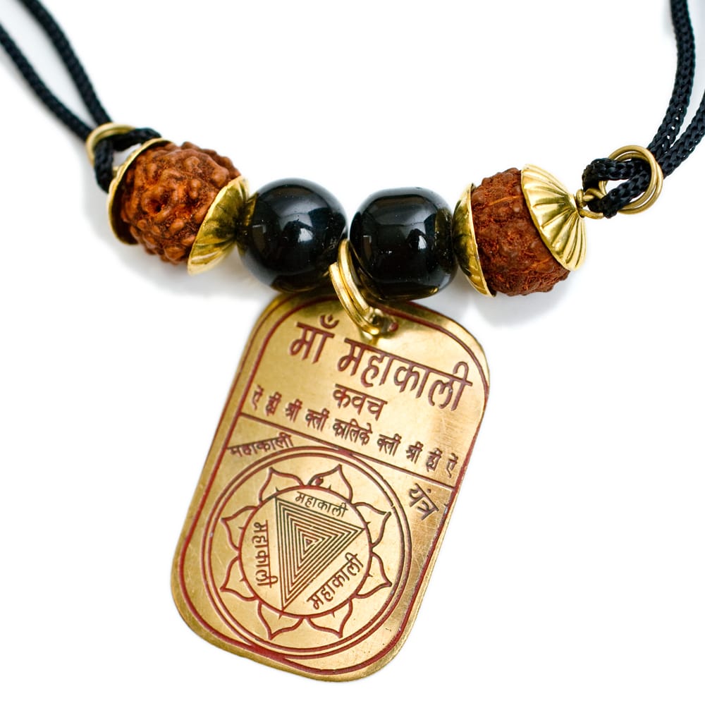 ヒンドゥー教の最高神シヴァが身につけている数珠のようなものは菩提樹の実です。この商品はその菩提樹の実に、ヤントラやヒンドゥー教の神々がプレートに刻印されています。身に着けるだけで幸運があったり、厄除けの効果がありそうですね。