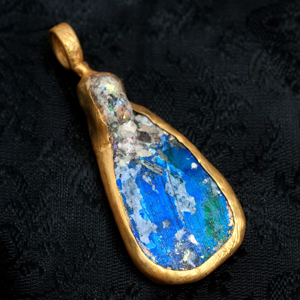 人の手では作ることができない、ただ、悠久の時だけが作ることが出来る貴重なガラスを、一つ一つ、一品物のペンダントにしました。