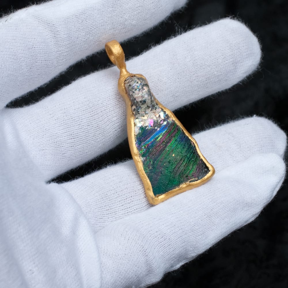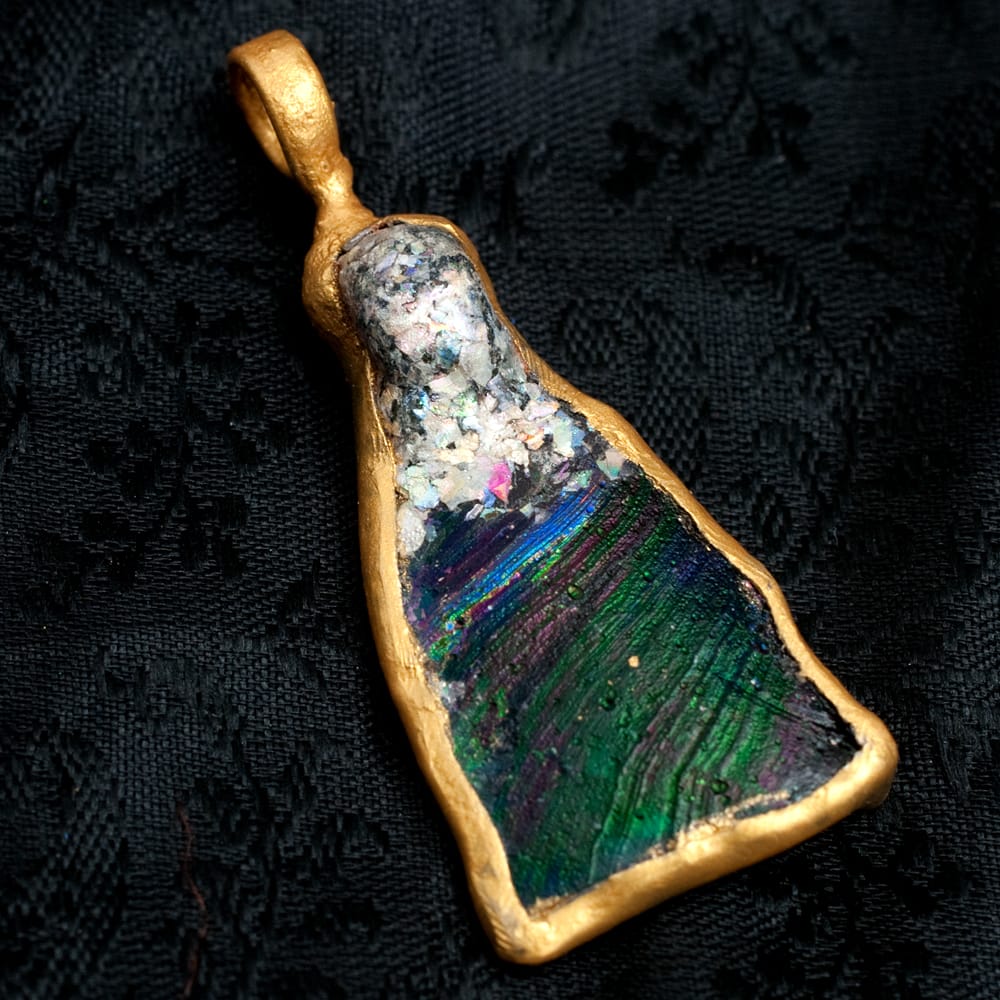 人の手では作ることができない、ただ、悠久の時だけが作ることが出来る貴重なガラスを、一つ一つ、一品物のペンダントにしました。