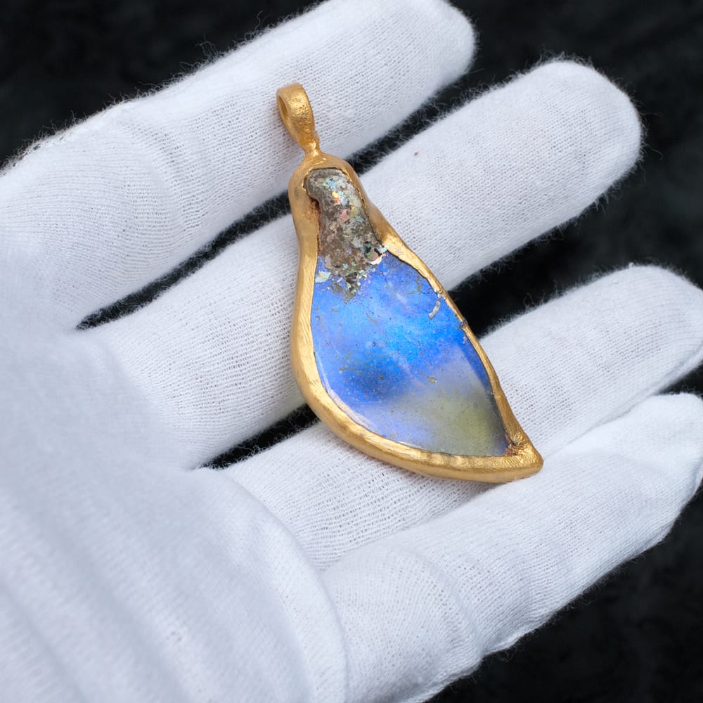 人の手では作ることができない、ただ、悠久の時だけが作ることが出来る貴重なガラスを、一つ一つ、一品物のペンダントにしました。