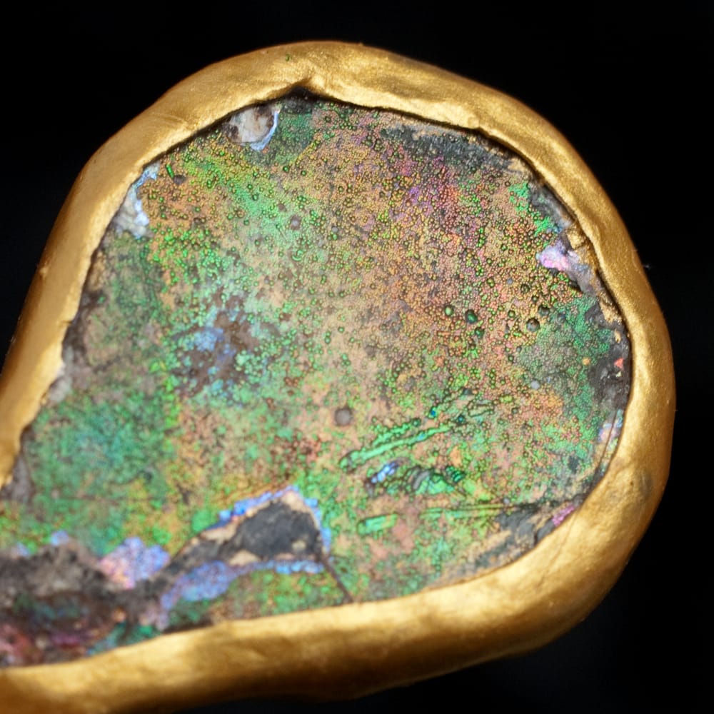 カラフルで星空の様な輝きを持つローマンガラスは、ローマ時代の人が使用したガラス製品が、遺物として土の下に埋まり、化学変化を起こして出来上がったものです。