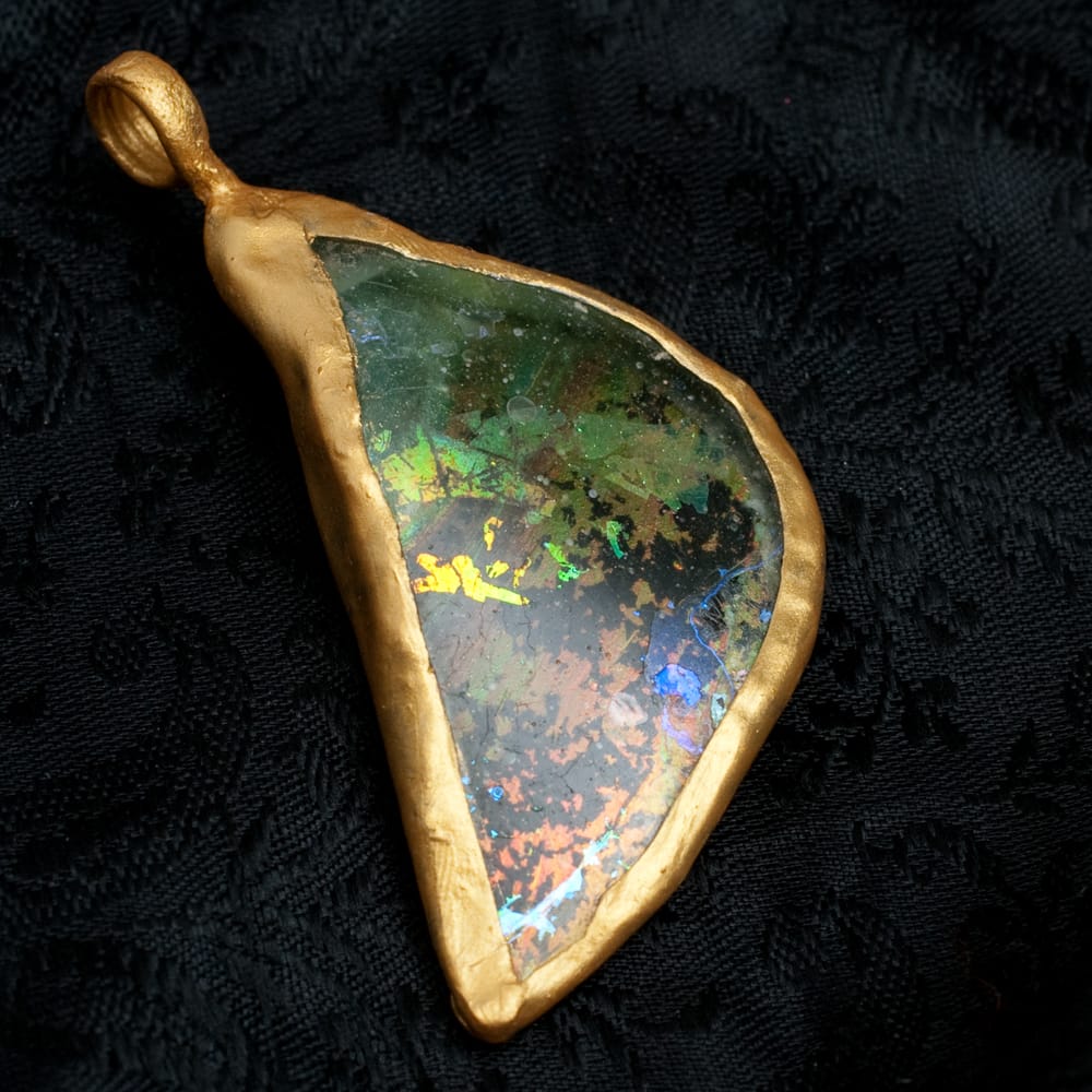 人の手では作ることができない、ただ、悠久の時だけが作ることが出来る貴重なガラスを、一つ一つ、一品物のペンダントにしました。