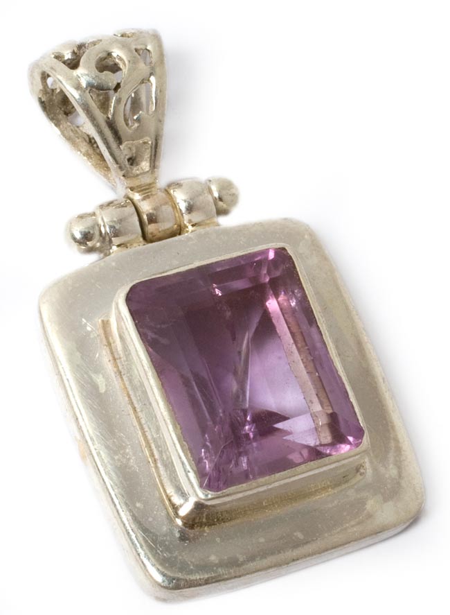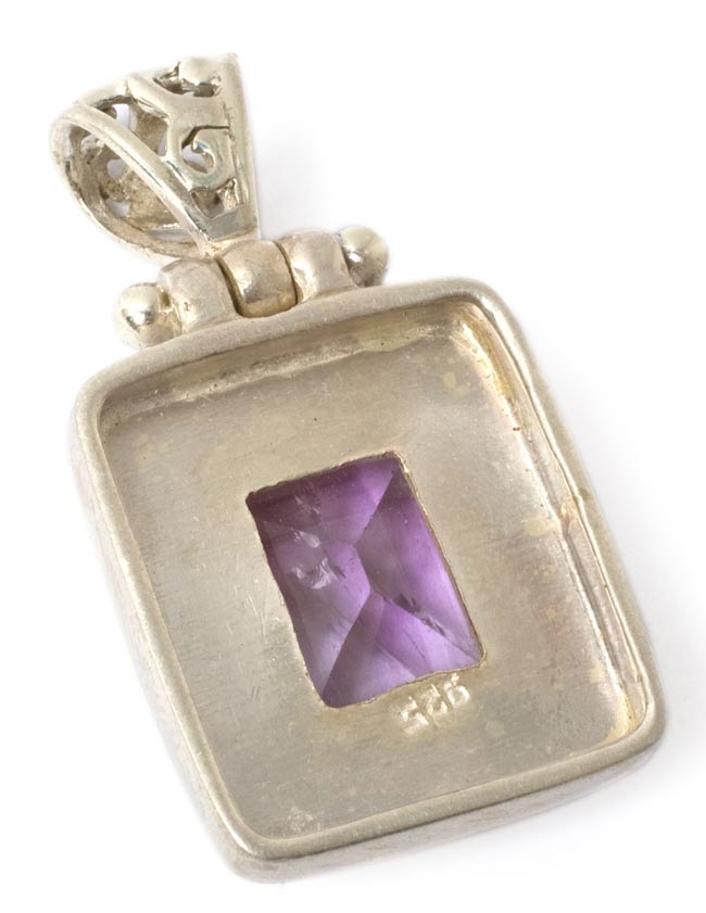 [シルバー925]インドの手作り原石ペンダントトップ[スライスアメジスト]
