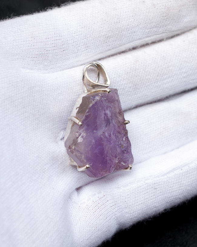 [シルバー925]インドの手作り原石ペンダントトップ[アメジスト]