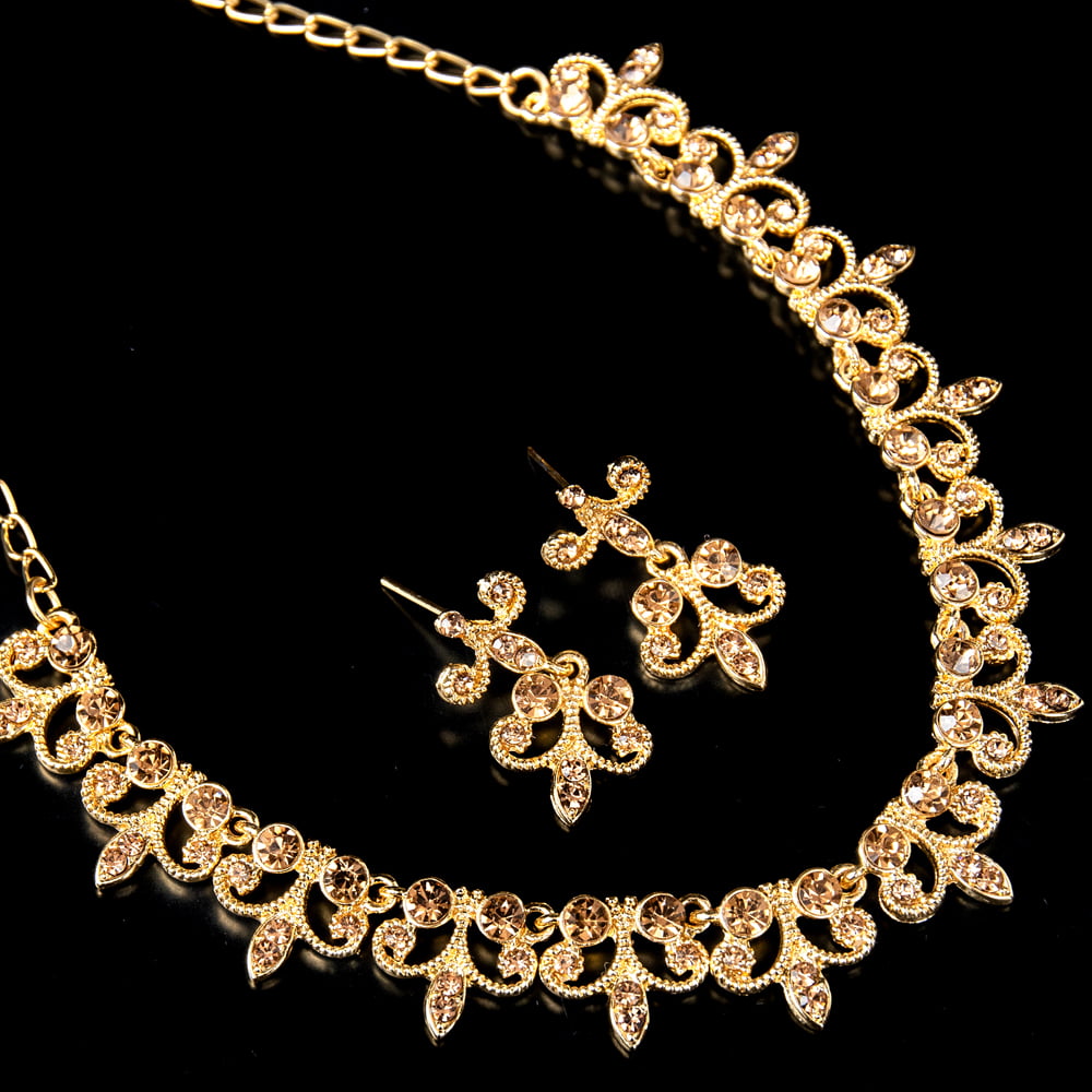 シンプルラインストーンのネックレス&ピアスセット パーティーや結婚式などへ アクセサリーセット 通販店