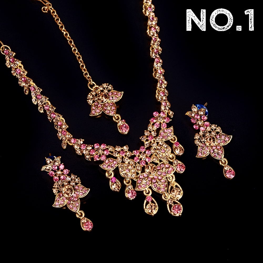 〔各色あり〕インドアクセサリー3点セット〔ネックレス、ピアス、ティッカ〕 パーティーや結婚式などへ 通販店