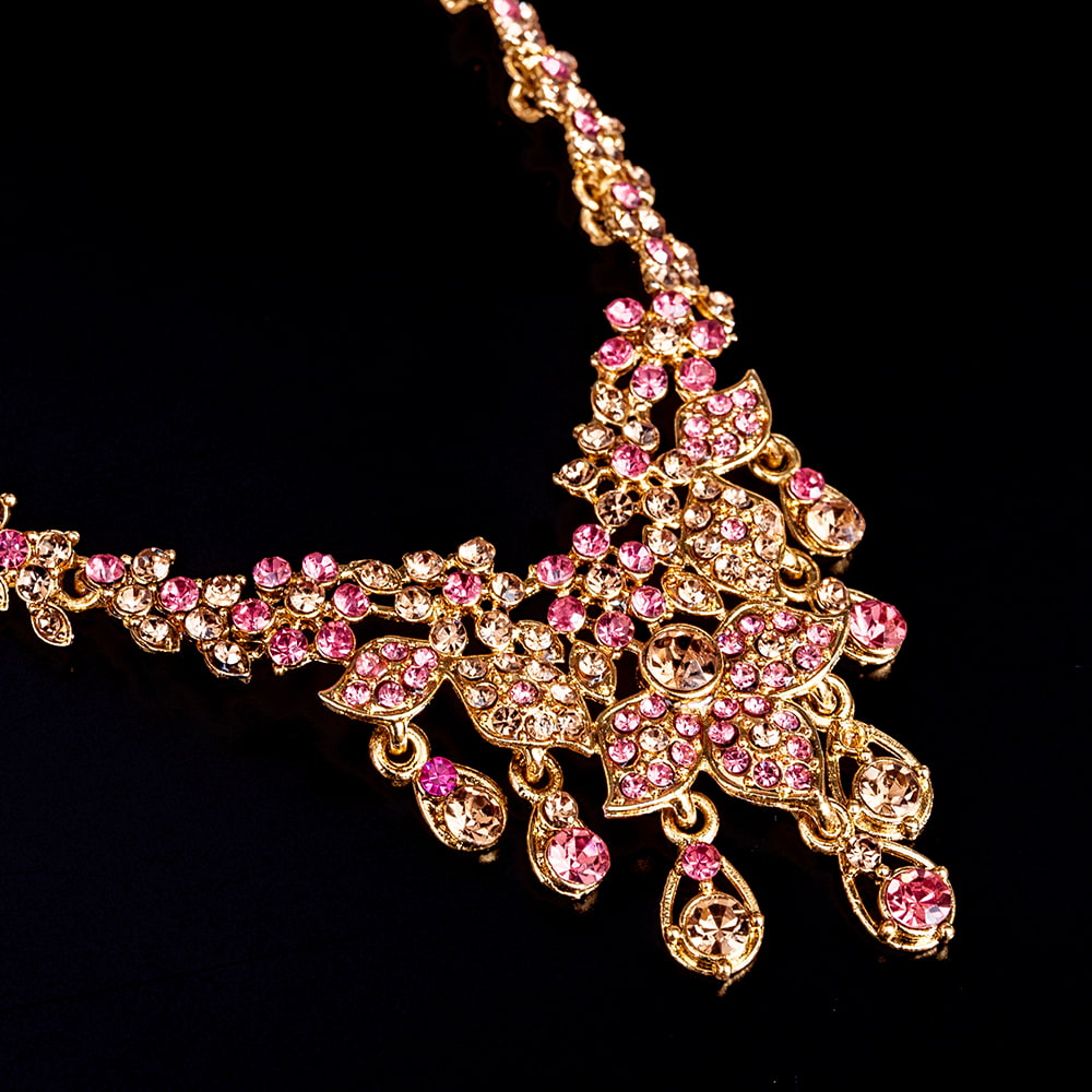 こちらのアクセサリーがやってきたのは、ボリウッド映画やインドファッションの中心地、ムンバイ。照明との相性もよく光を受けて美しく輝きます。パーティーや結婚式など華やかに彩りたい様々なシチュエーションで活躍してくれます。