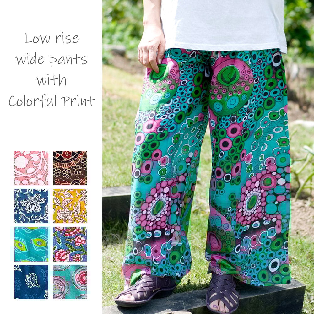 [大感謝祭セール]ローライズのカラフルプリントのワイドパンツ