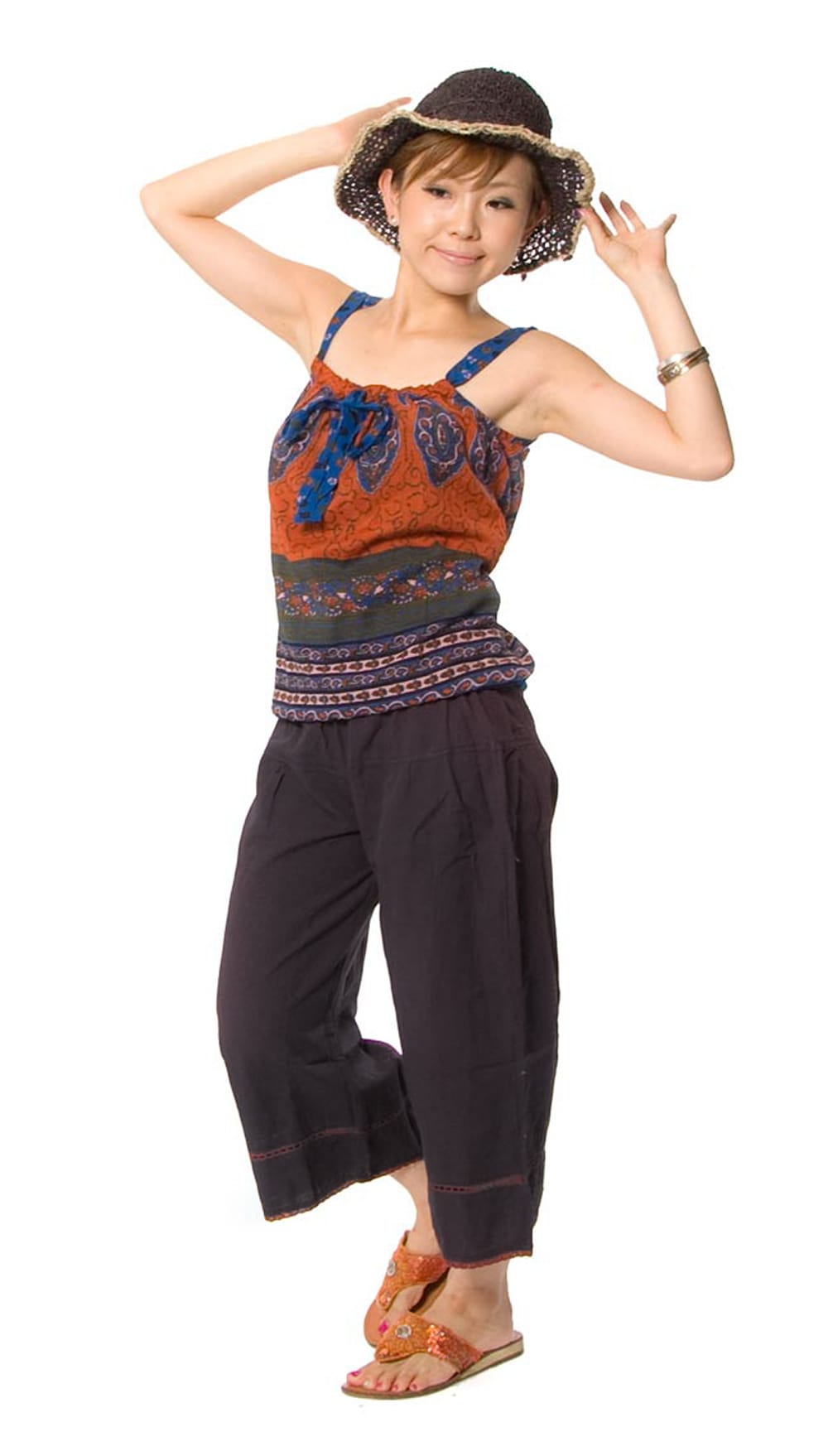 | 大きさ | ウェスト:60cm〜80cm位(総ゴム仕様) ヒップ:約120cm 股上:約30cm 股下:約53cm |