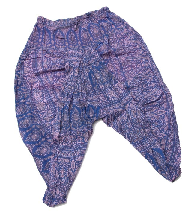 このパンツの特徴はなによりもこの形!思わずどうなってるの??と確認したくなる不思議なパンツです。合わせた布の間から、ちゃんと足が出てとても履きやすいですよ。