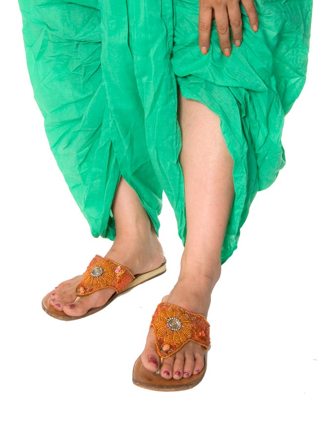 柄はインドらしいペイズリー柄。全体的に優しい色見なので女性らしく可愛くきていただけますね。