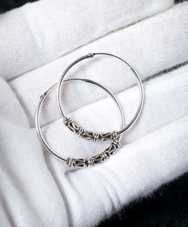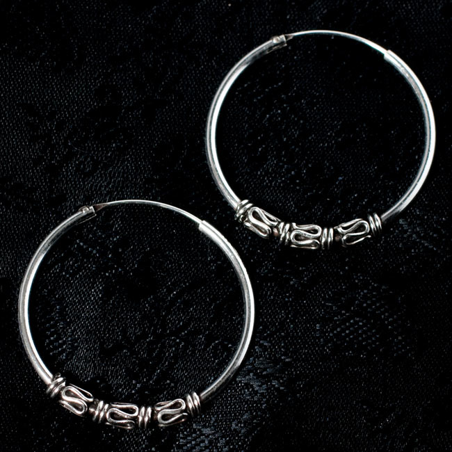 [シルバー925]シンプルエスニック・リングピアス[2.9cm]の商品写真 2枚目 拡大写真です。