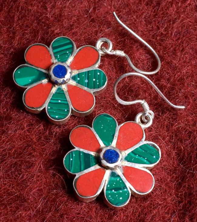 チベタンメタルピアス - お花 赤の類似商品