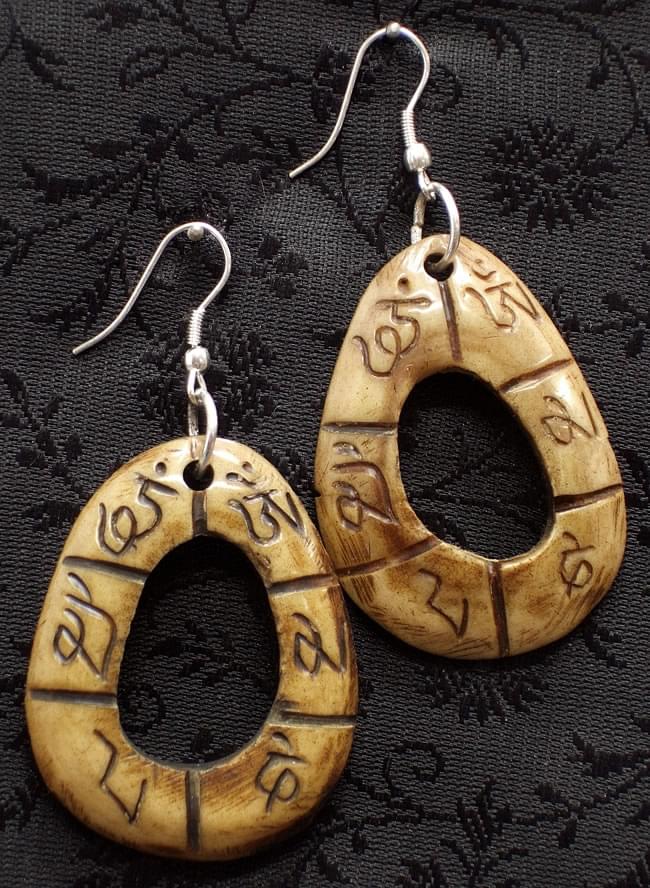 水牛の角を削って作られたエスニックな雰囲気のピアス。