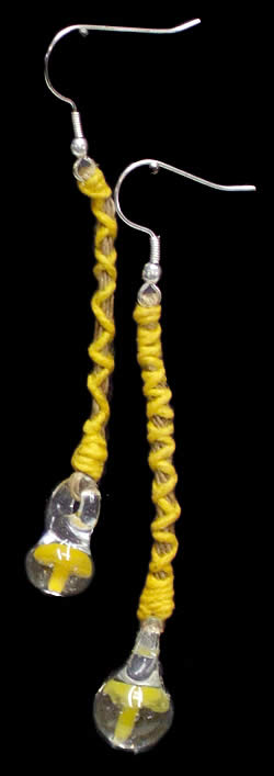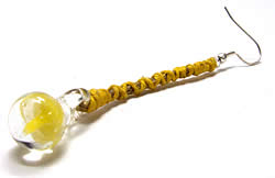 ヘンプとガラスのきのこピアス[黄]