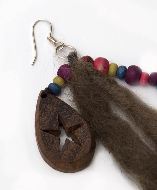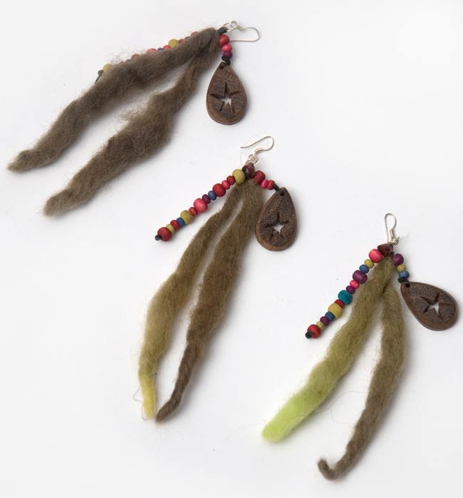 ネパールからやってきた、フェルトの木製スターの付いたピアスです。