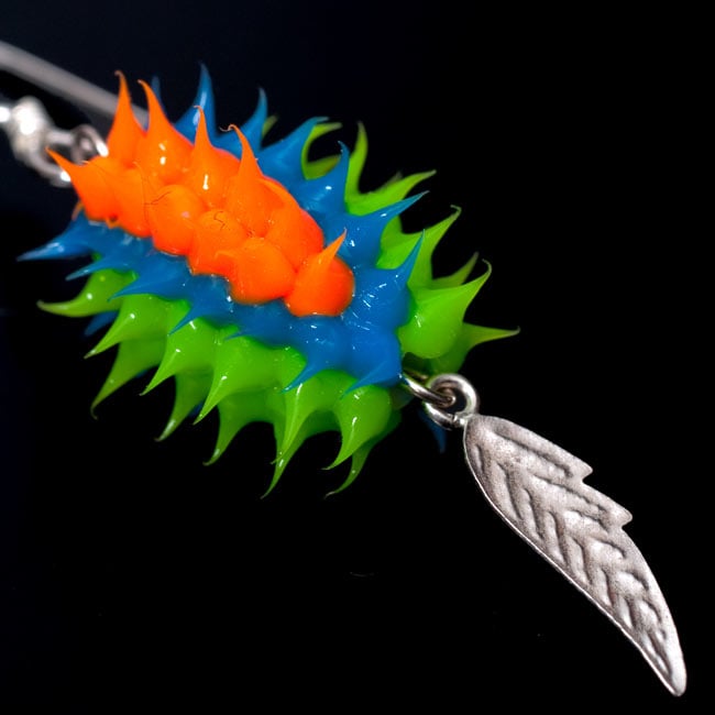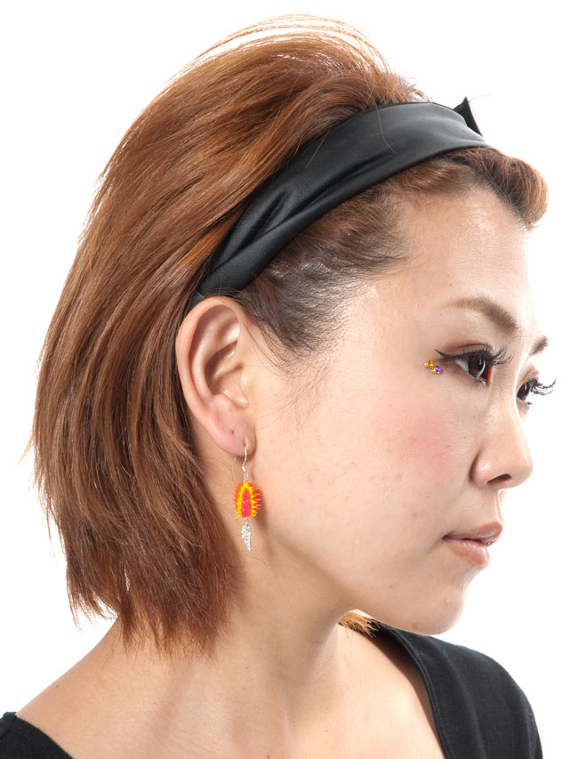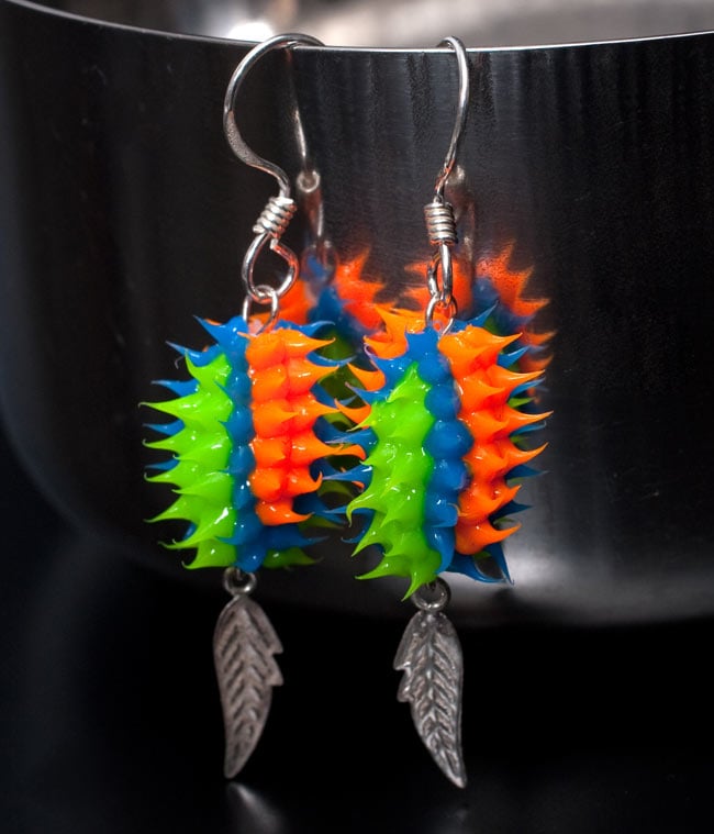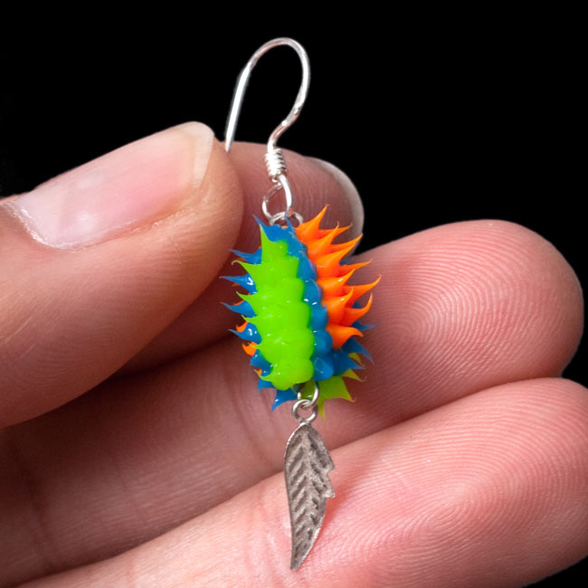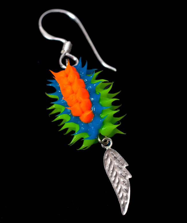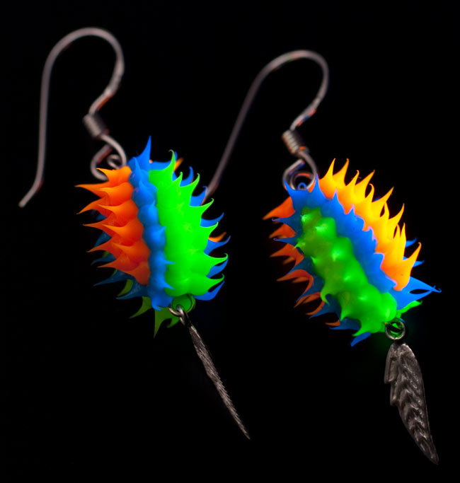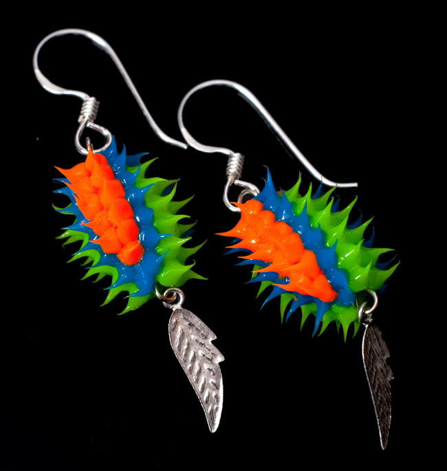 ピアスの下にシルバーで作られた羽もつき、ポップでサイケでお洒落です。エスニックなファッションともぴったりマッチすると思います。野外フェスに行って夜中、光るところを探し歩くのがきっと楽しくなりますよ。