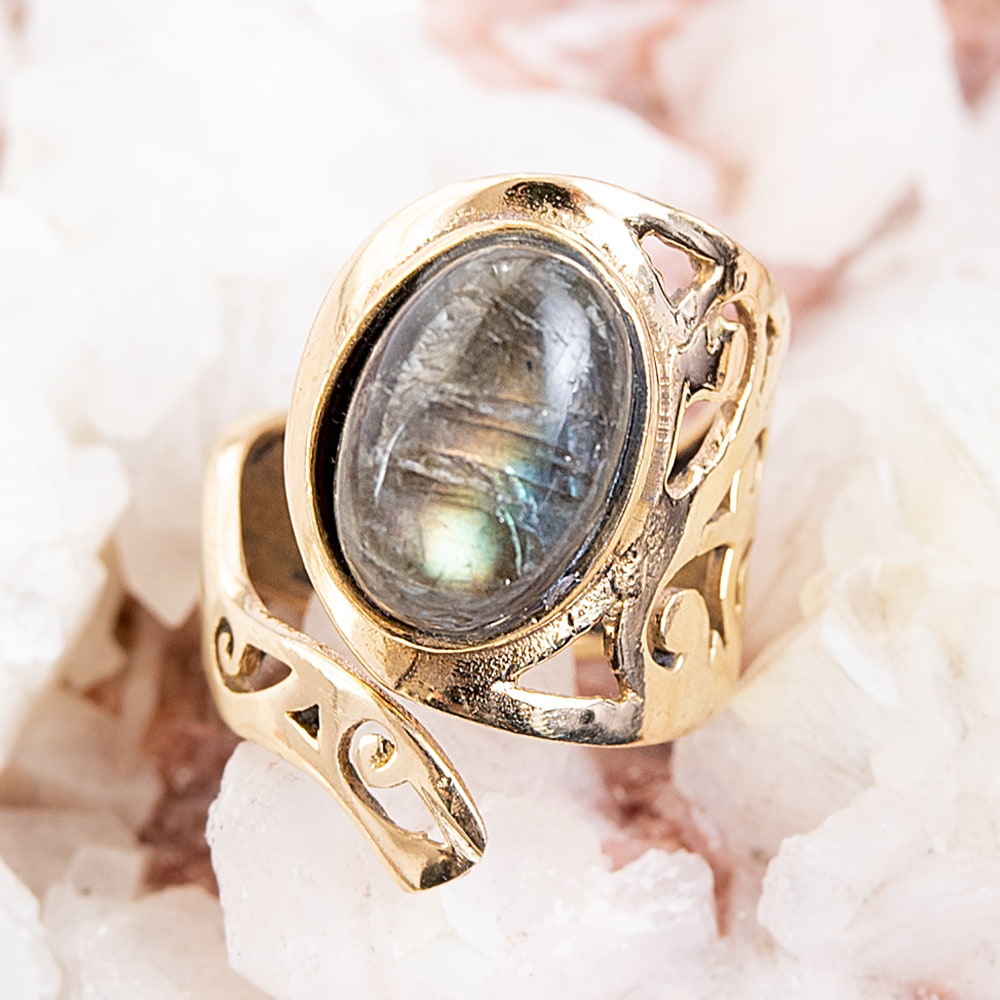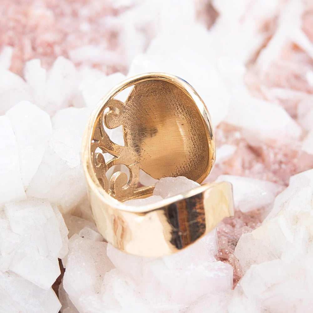 【安心のフリーサイズ】インドのペイズリー柄ゴールド天然石リング
