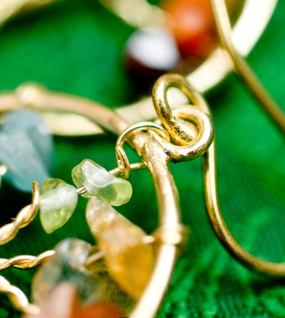 金の土台と派手すぎない石の色合いがカラフルだけど大人っぽくて良いです。