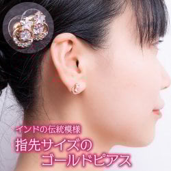 インドの伝統模様 指先サイズのゴールドピアス フラワー