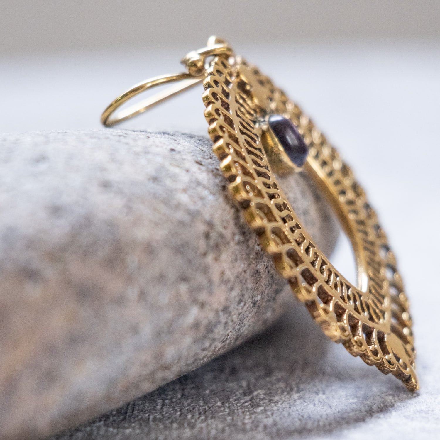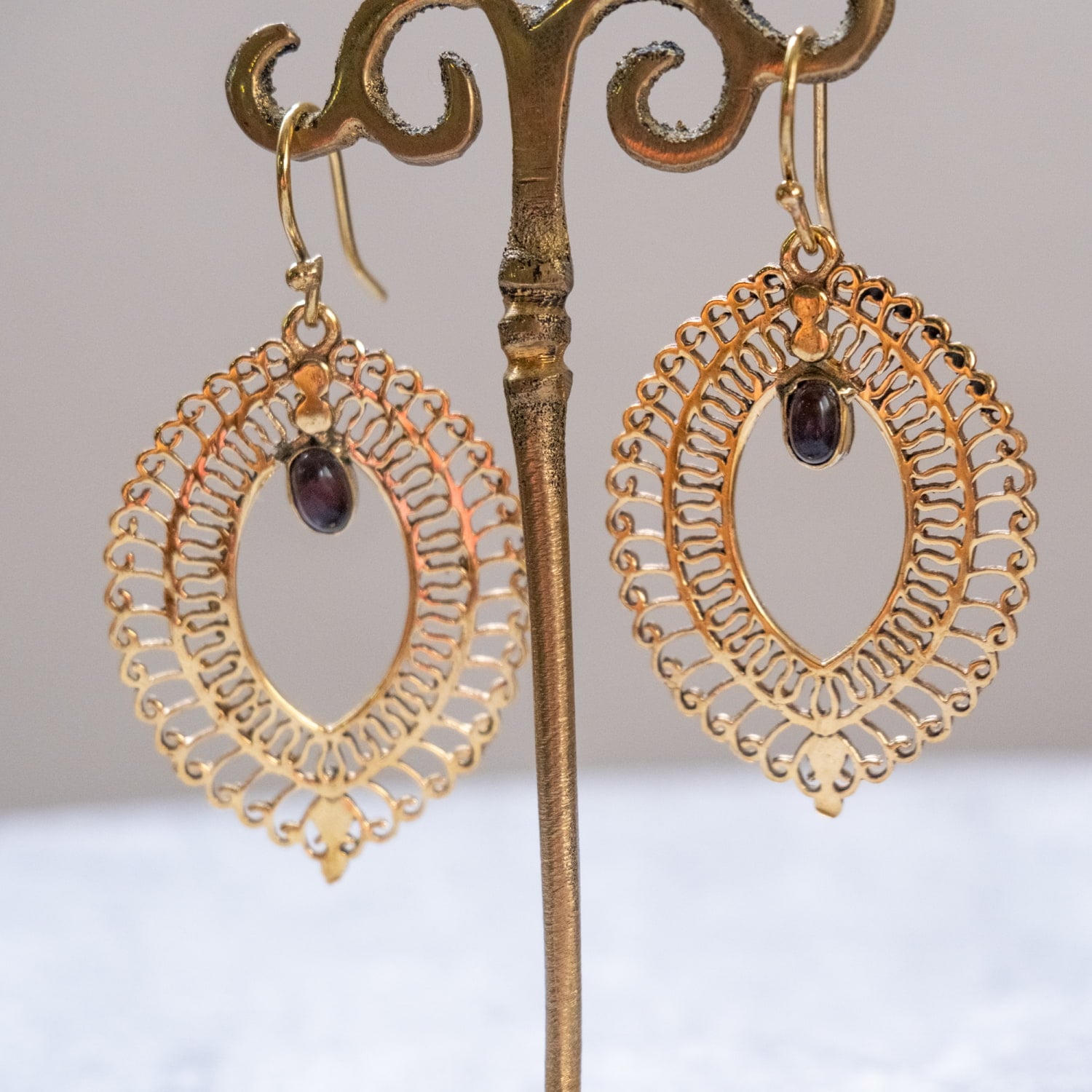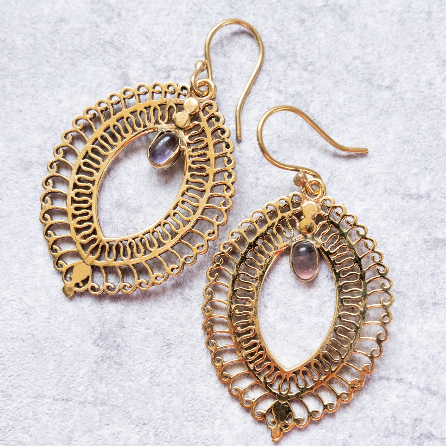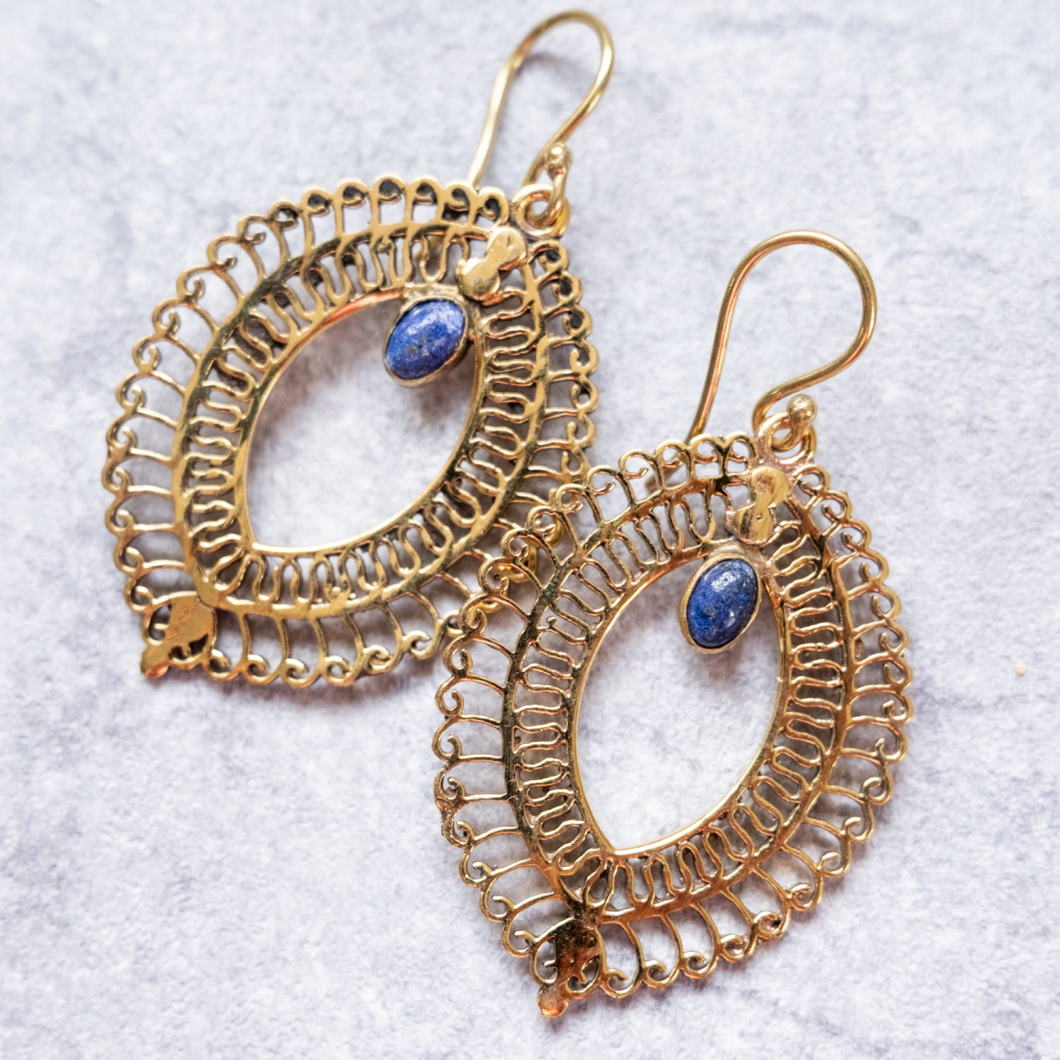このピアスは古くから文化の交流地点であったデリーで作られている一品です。デリーはインドの首都ですが、千年以上も前からいろいろな旅人を受け入れてきた土地柄です。それ故に彼らの作るデザインの中にはどことなく中東やアラビアンな雰囲気が顔を覗かせ、ただ単純に「インドらしい」だけではない、なだらかに過ぎた時の流れを感じさせるような魅力あります。